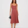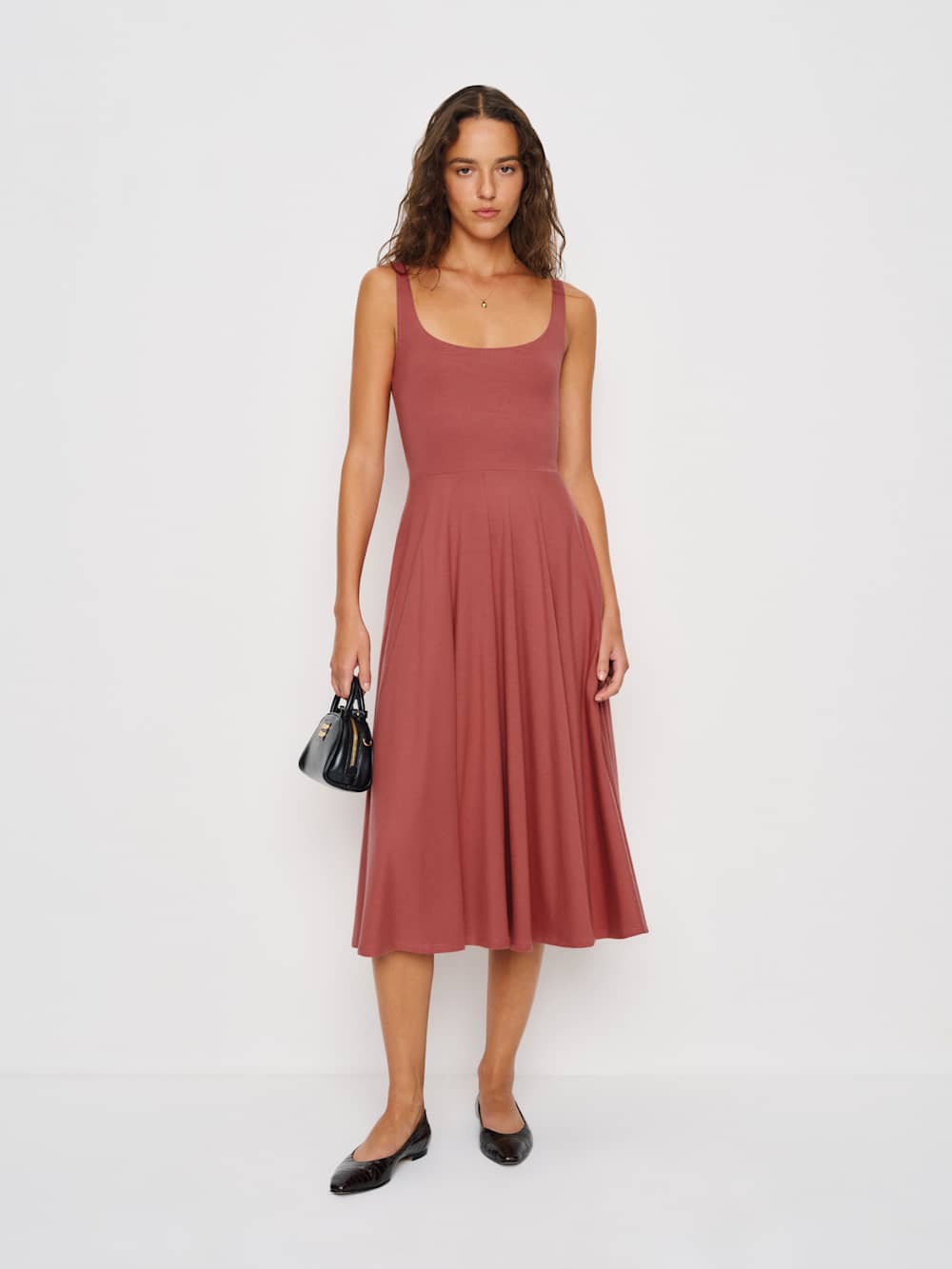 Look cute, be comfortable. Shop the classic Rou Dress from Reformation, a midi length, fit and flare dress with a scoop neckline.