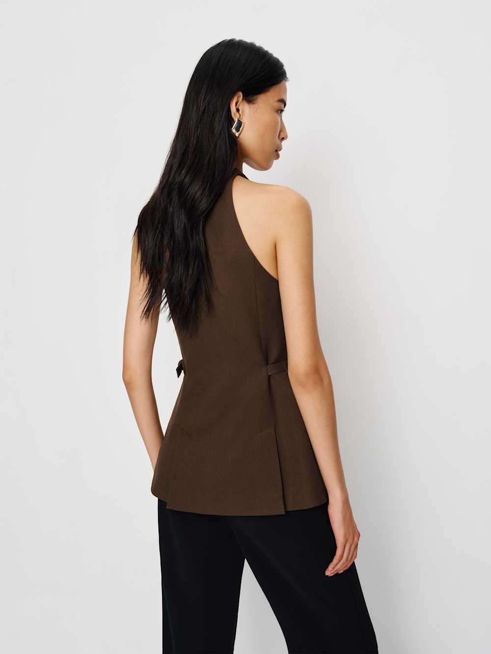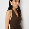 You must be new. Shop the Rowe Vest from Reformation, a sleeveless vest-style top with a functional button front, V-neckline, and buckle details on the side.