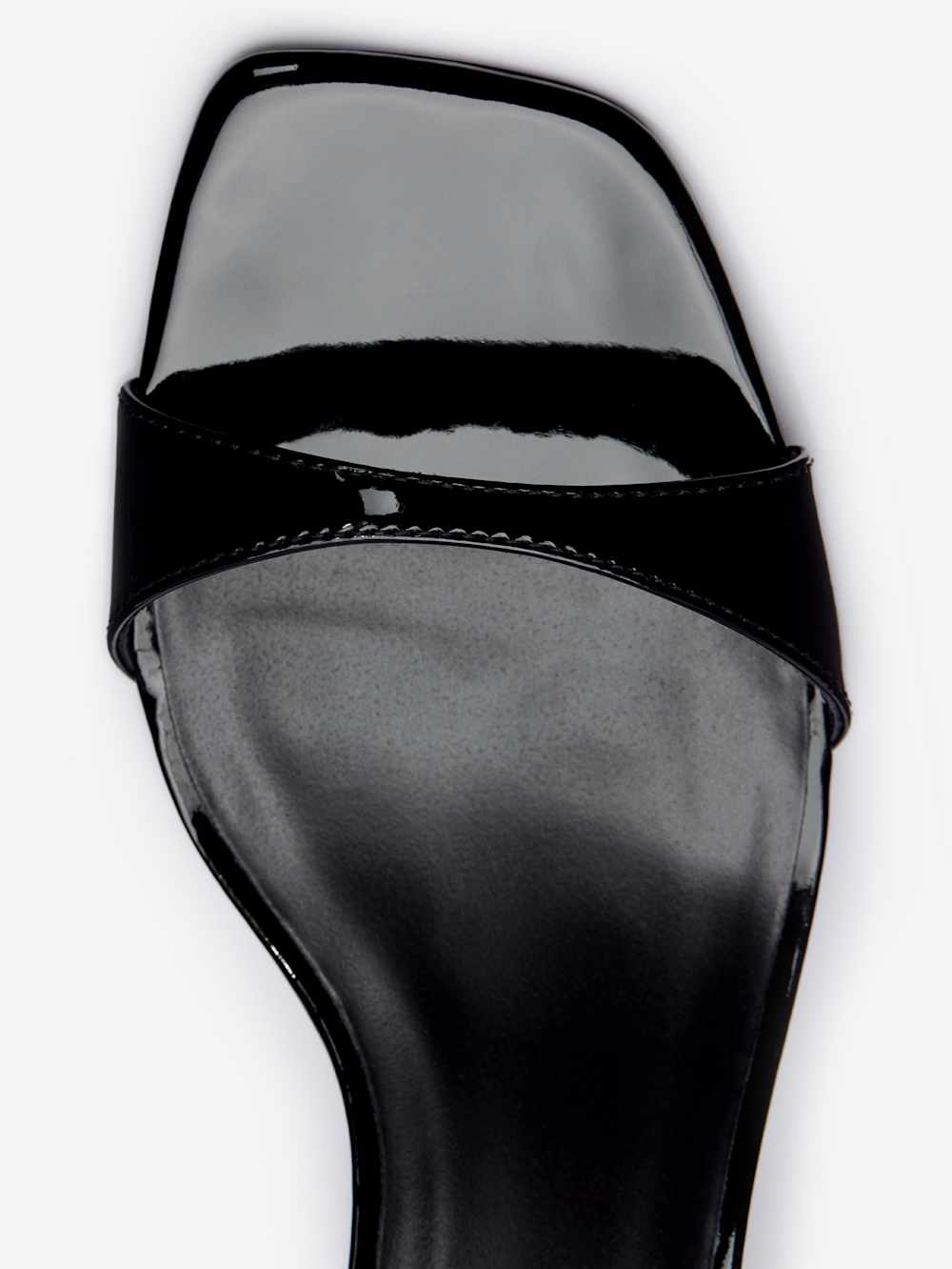 Bovine leather with lustrous patent finish. Spot clean.