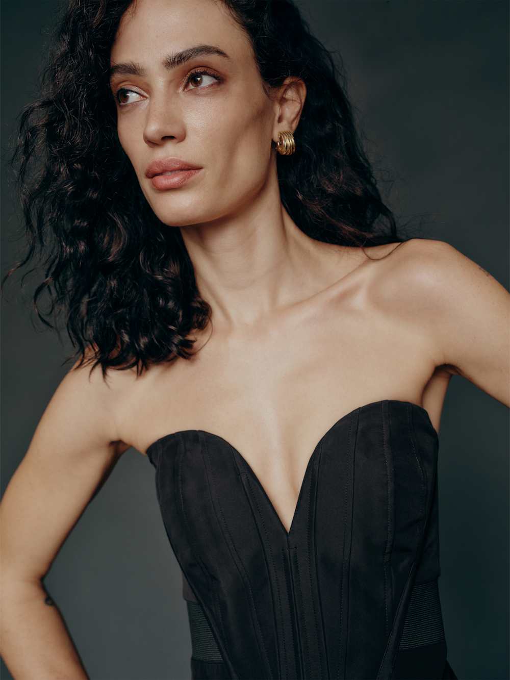 Up top. Shop the Sebastian Top from Reformation, a strapless top with a sweetheart neckline and boning through the corset.