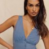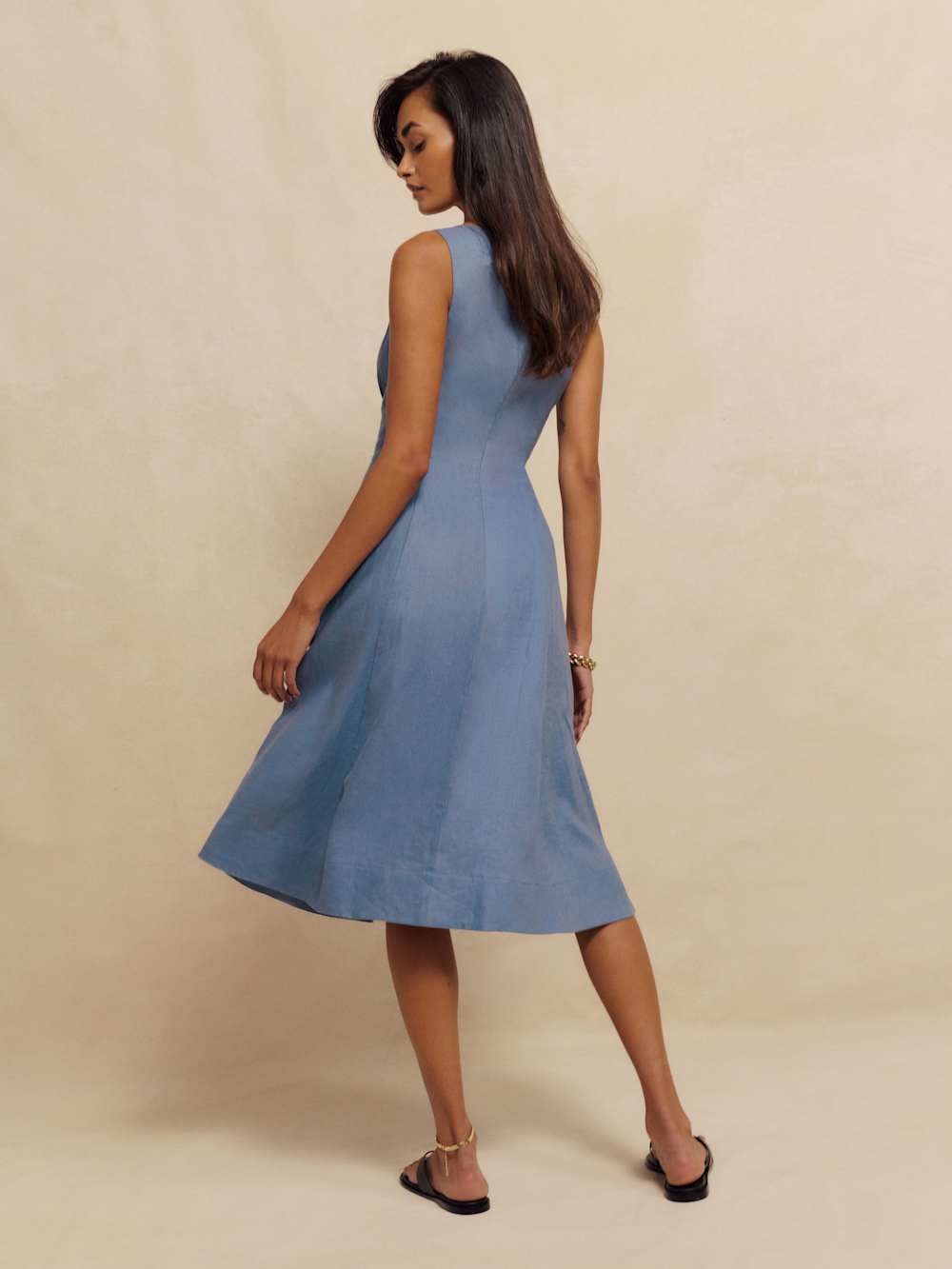 How classic. Shop the Sebastien Linen Dress from Reformation, a sleeveless midi dress with a v-neckline and button front.