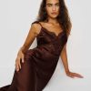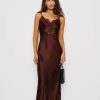 Big romance. Shop the Serafina Silk Dress from Reformation, a maxi dress with a V-neckline, flutter sleeves, and lace detailing.