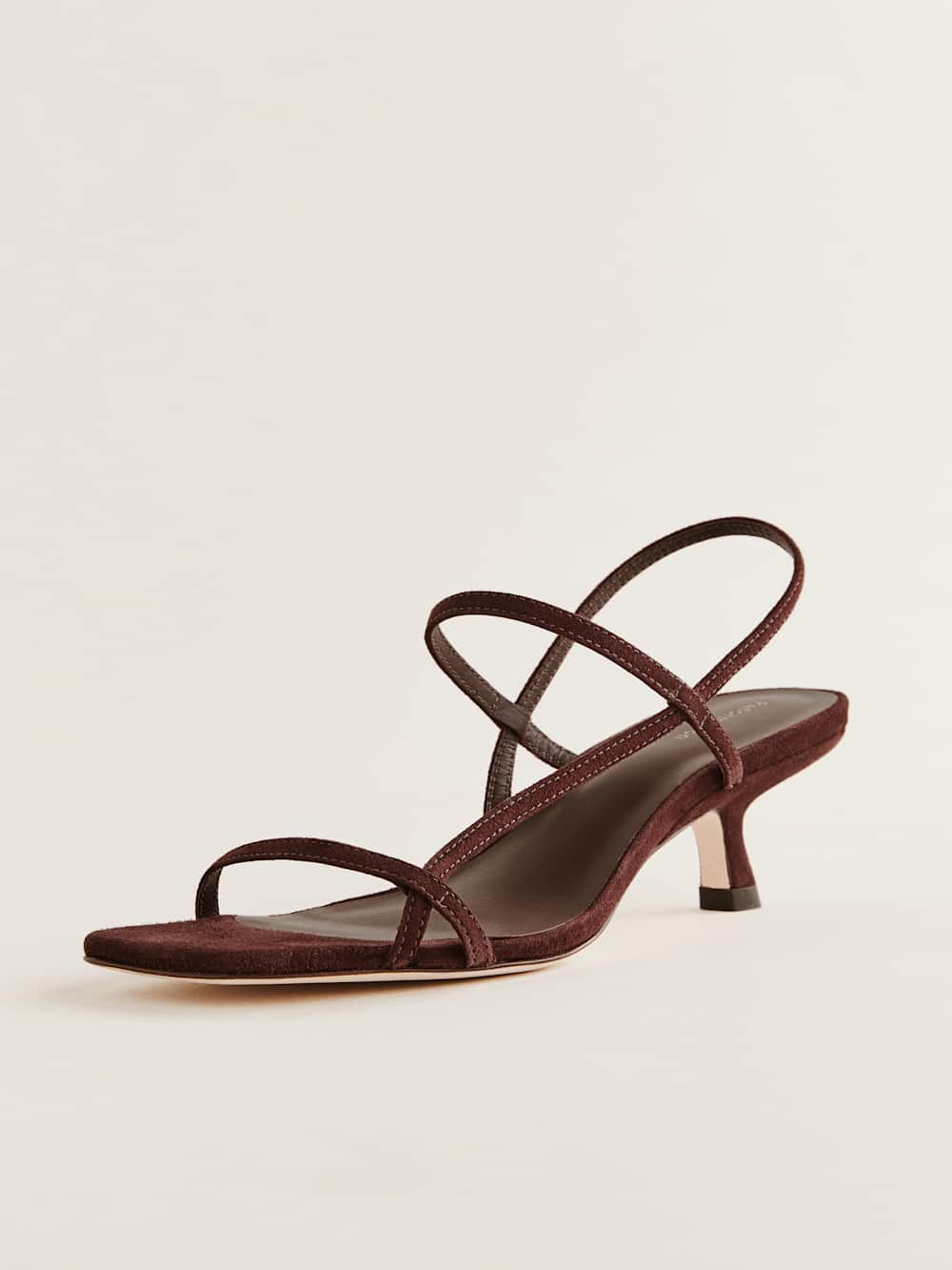 Solemates. Shop the Serenity Bare Sandal from Reformation, a sexy and strappy kitten heel with adjustable ankle security.