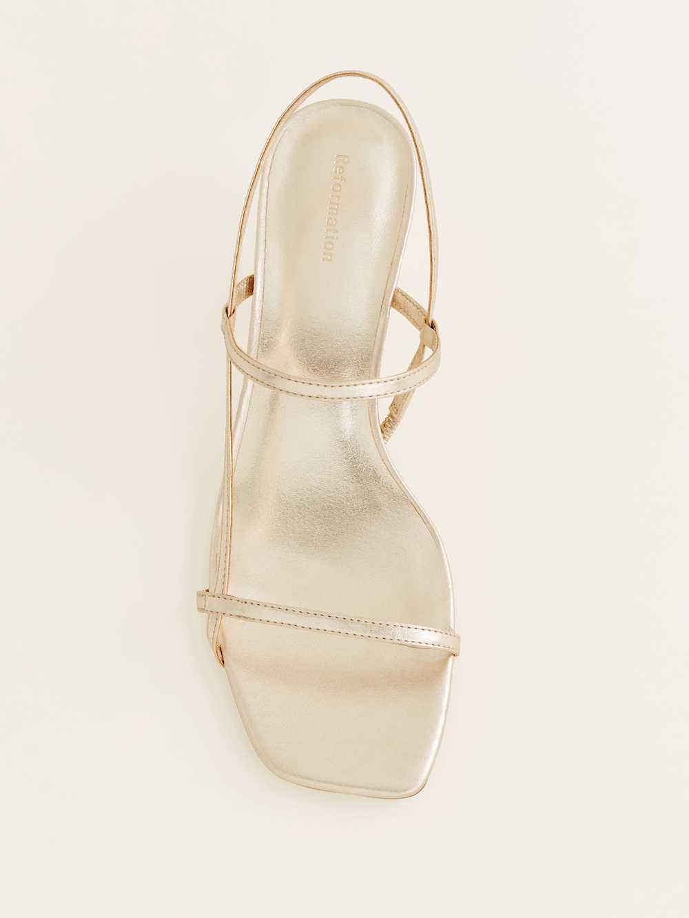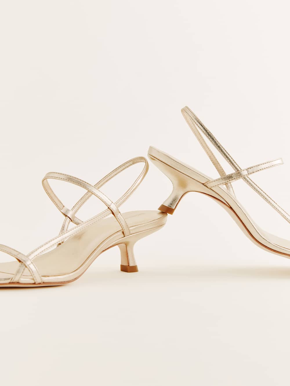 Solemates. Shop the Serenity Bare Sandal from Reformation, a sexy and strappy kitten heel with adjustable ankle security.