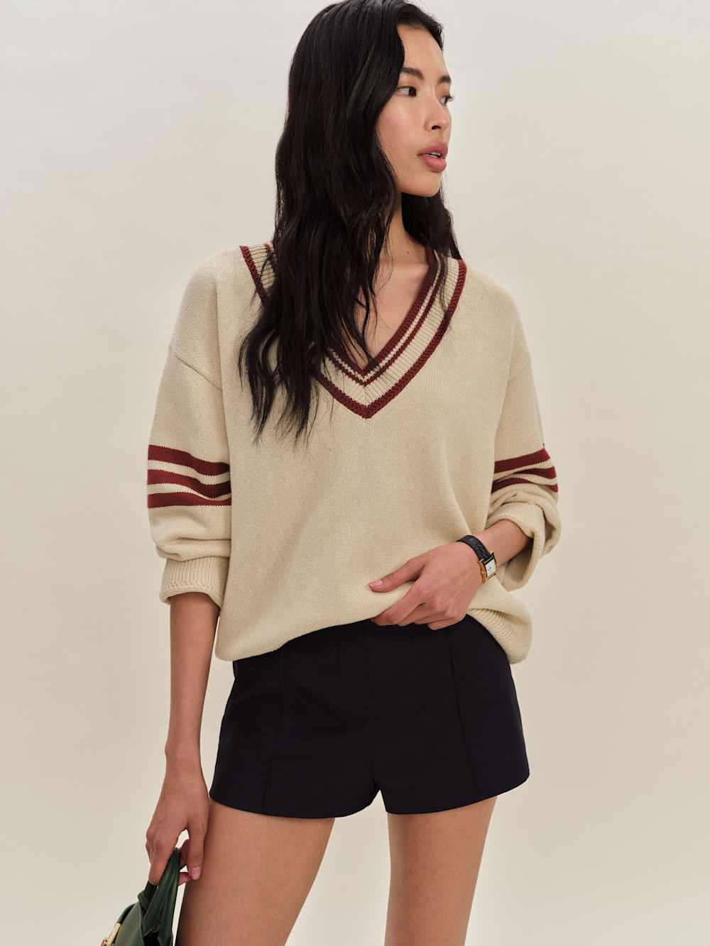 Cozy up. Shop the Sienna Oversized Cotton V Neck Sweater from Reformation, an oversized sweater with a v neckline.