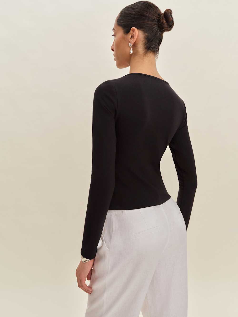 You make it look easy. Shop the Silas Knit Top from Reformation, a long-sleeved top with cinch details in the front.