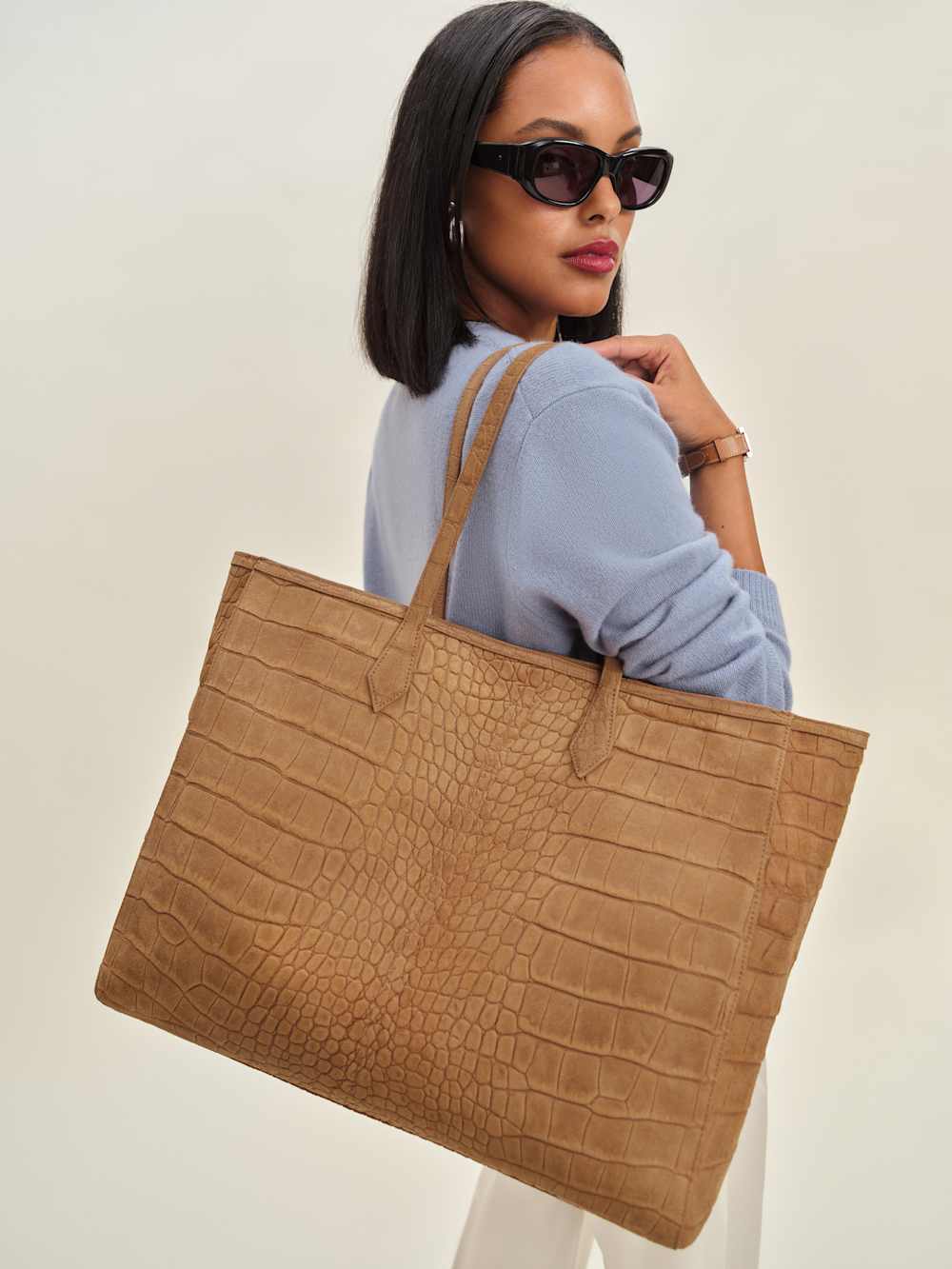 Wear me. Shop the Sofia Tote from Reformation, an oversized tote bag with shoulder straps.