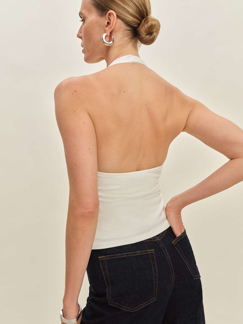 Detail oriented. Shop the Sonny Knit Top from Reformation, a scoop neck halter top with eyelet details and an open back.