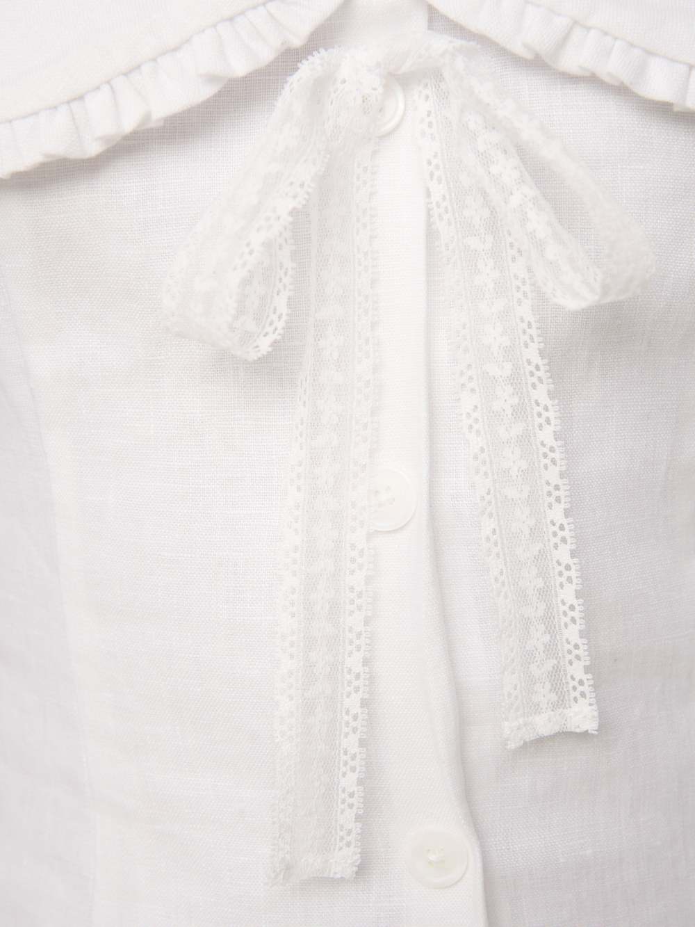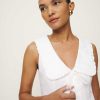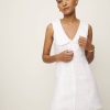 Romance alert. Shop the Soraya Linen Dress from Reformation, a sleeveless, mini length dress with a v neckline and exaggerated collar.