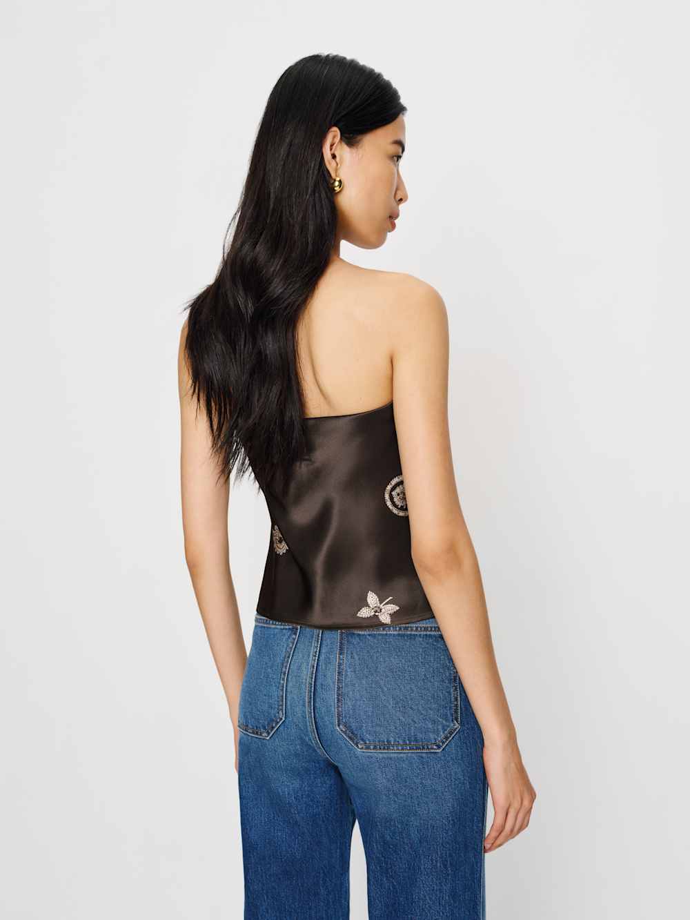 For that thing this weekend. Shop the Spritz Top from Reformation, a strapless, silk top with a straight neckline.