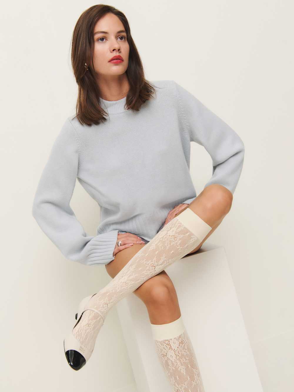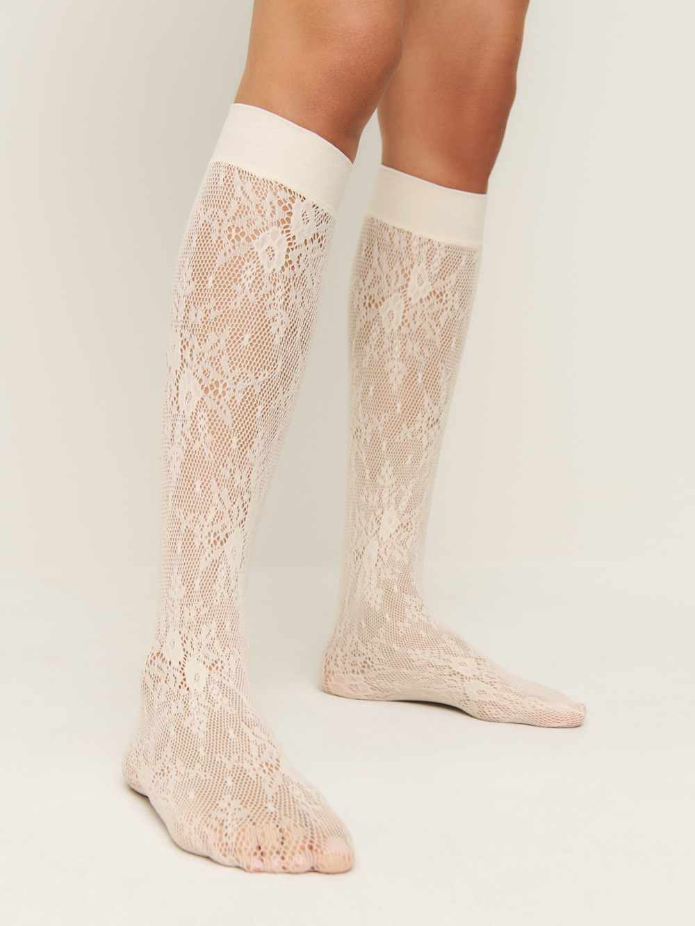 Pretty neccesary. Shop the Swedish Stockings Rosa Lace Knee Highs from Reformation, a lace knee-high sock.