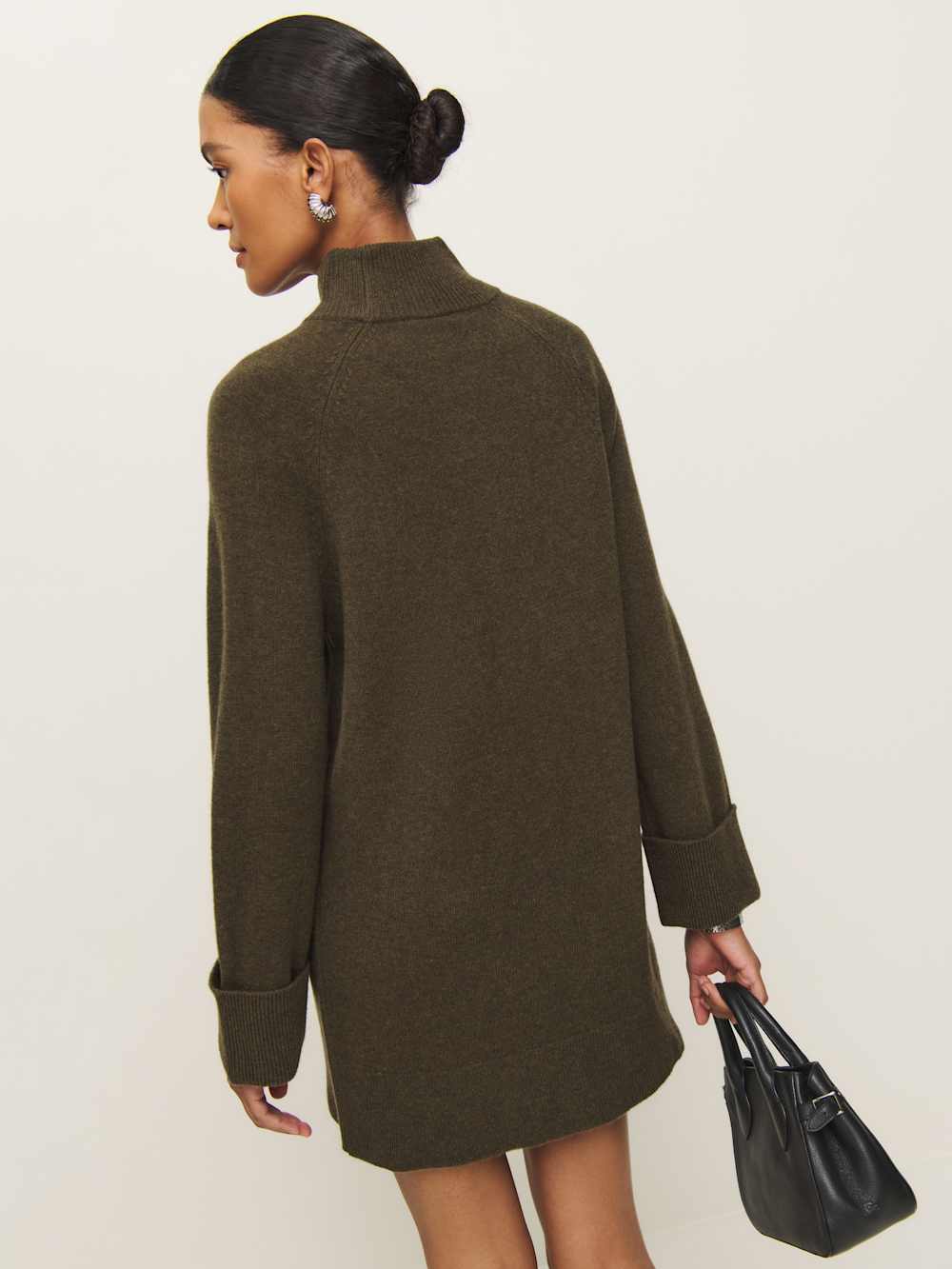 You flirt. Shop the Tate Regenerative Wool Sweater Dress from Reformation, a mini sweater dress with long sleeves and a slight turtle neckline.