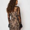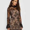 You flirt. Shop the Teanna Dress from Reformation, a long-sleeved mini dress with a mock neck, a scalloped hem, and flared sleeves.