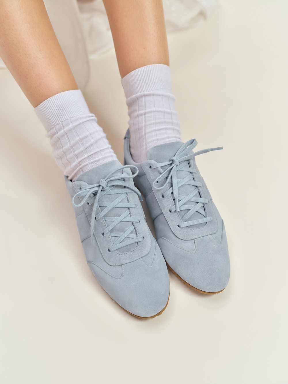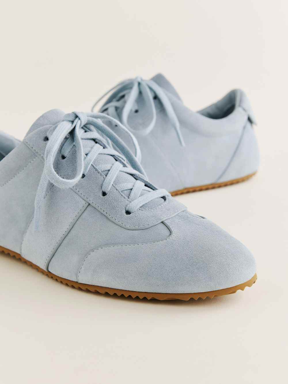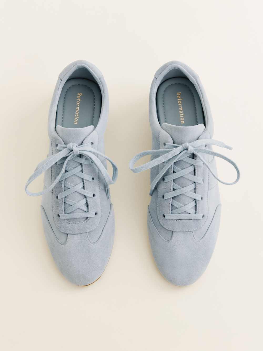 Wear me. Shop the Terra Sneaker from Reformation, a flat sneaker with a round toe, panel detailing, and adjustable tie laces.