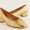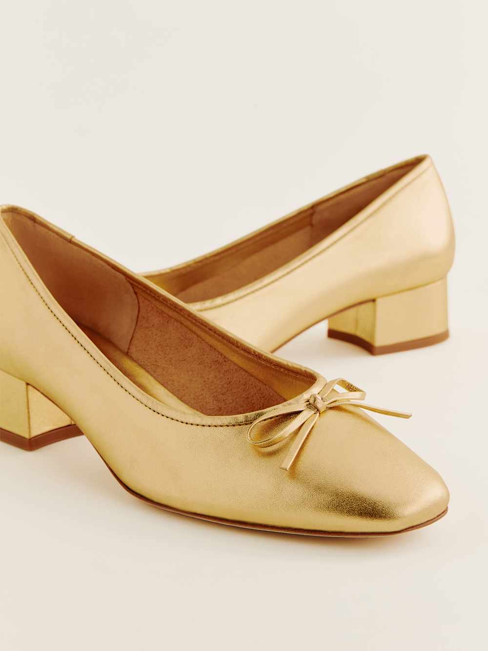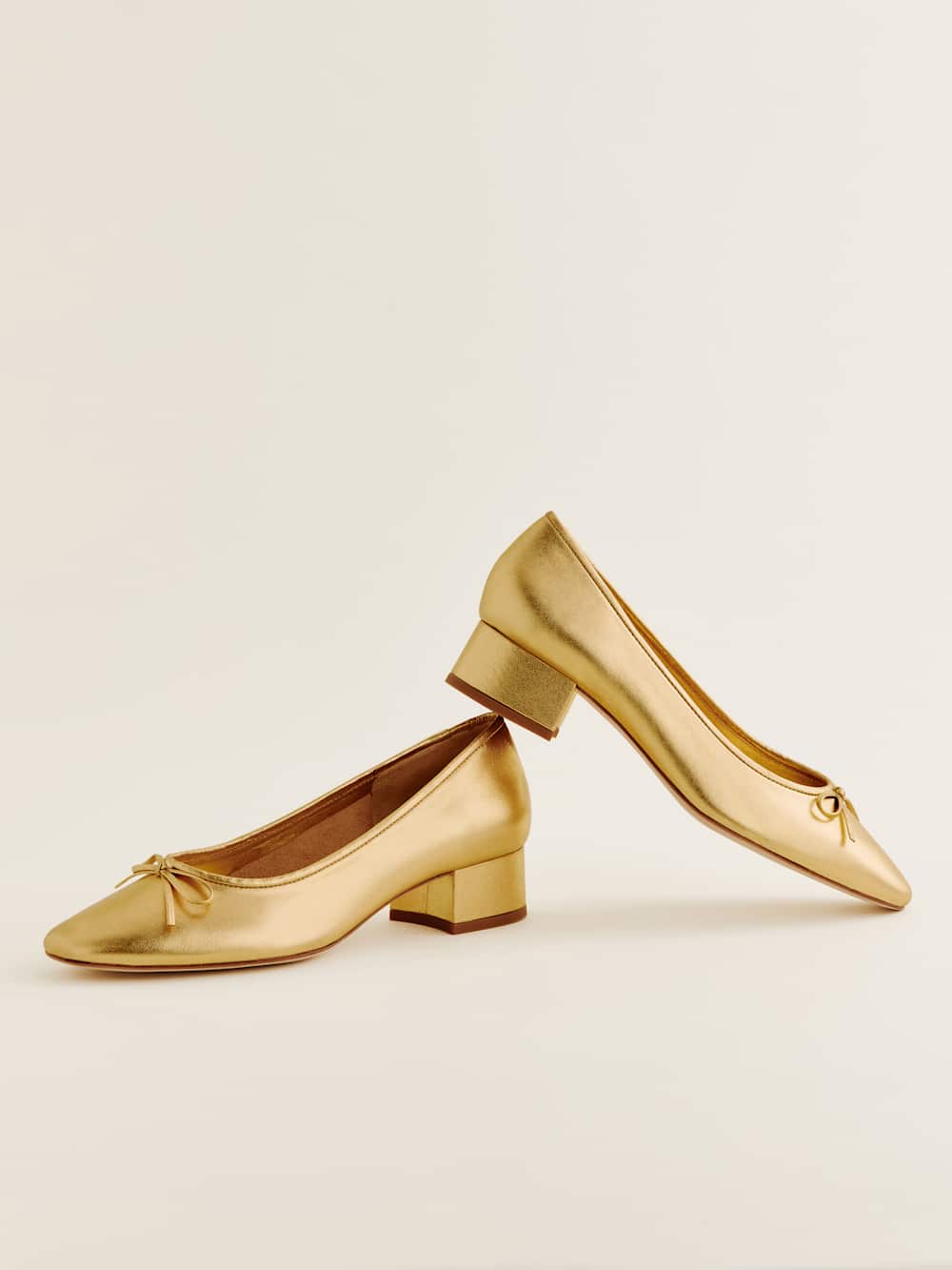 Wear me. Shop the Terry Ballet Pump from Reformation, a heeled ballet pump with a round toe and bow detailing.