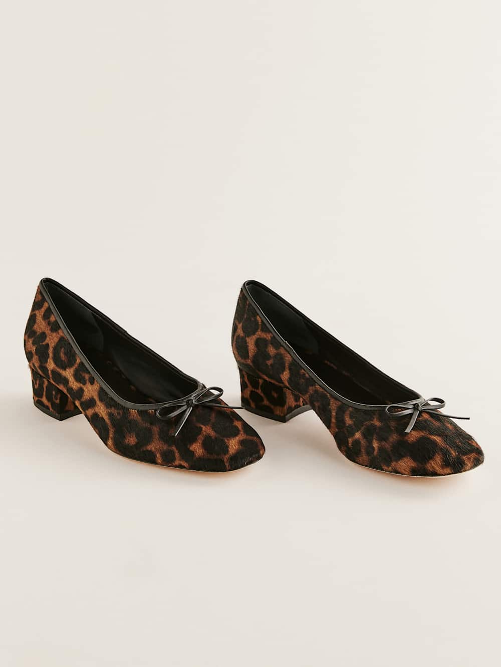 Wear me. Shop the Terry Ballet Pump from Reformation, a heeled ballet pump with a round toe and bow detailing.