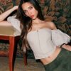 The model is wearing a size 2 and is 5’10", 23" waist, 34" hips, 31" bust.