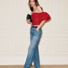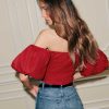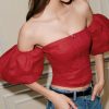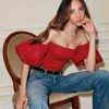 You must be new. Shop the Thayer Top from Reformation, an off the shoulder neckline top with puff sleeves, and a zipper down the front.