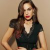 The model is wearing a size 0 and is 5′ 9.5", 24" waist, 34.5" hips, 34" bust.