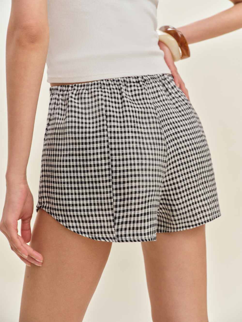 Let those legs out. Shop the Tiffie Linen Short from Reformation, a low-rise linen short with an elastic waistband.