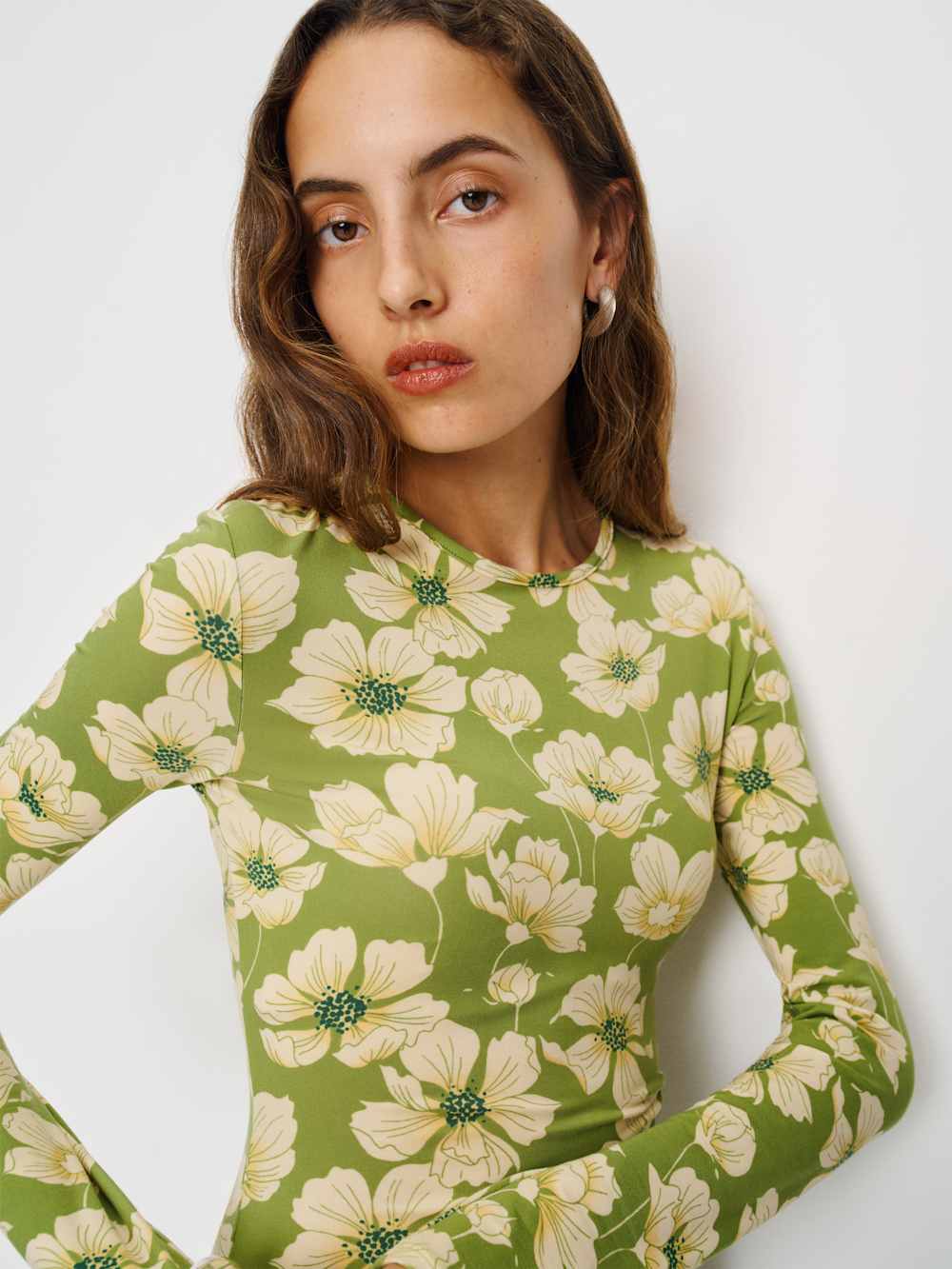 Who, me? Shop the Tommie Knit Dress from Reformation, a long sleeve, midi dress with a crew neckline.