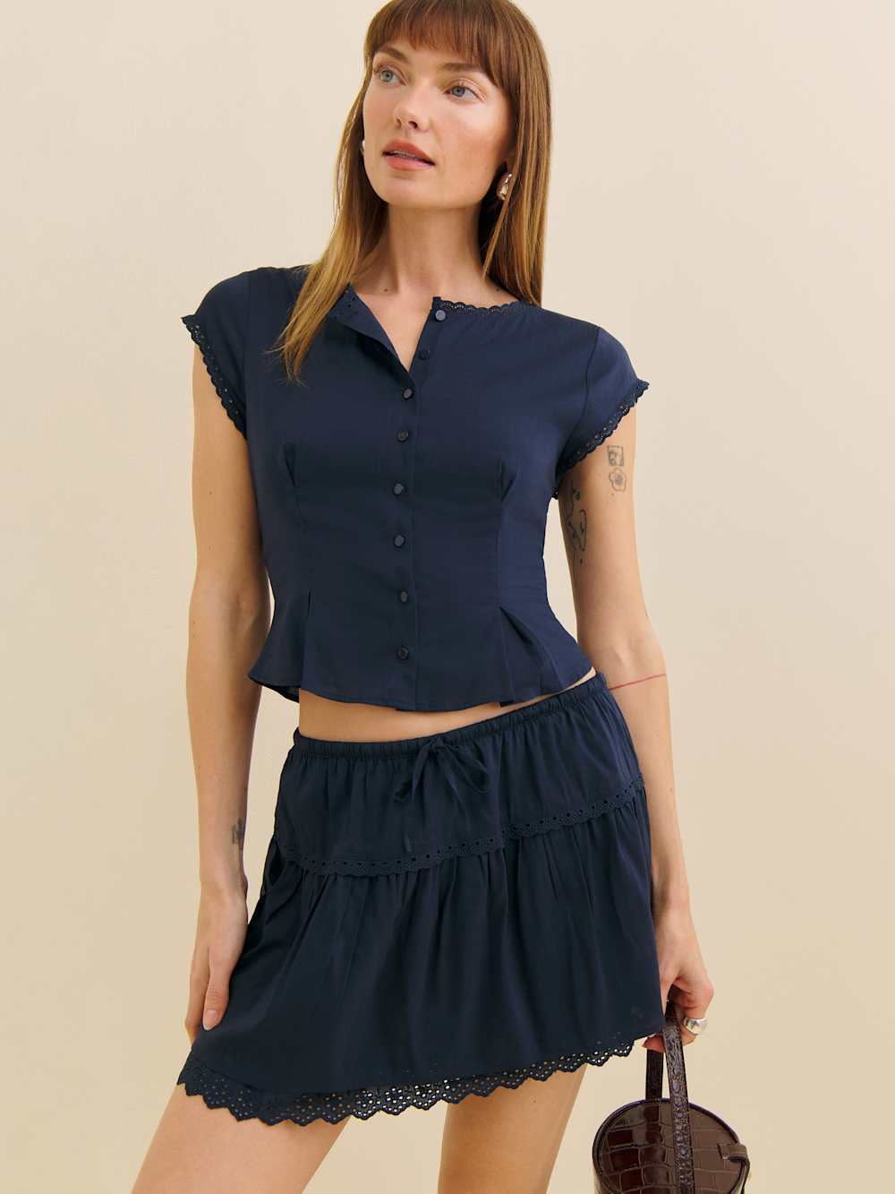 Big romance. Shop the Valetta Two Piece from Reformation, a two piece set with a button front top and a matching mini length skirt.