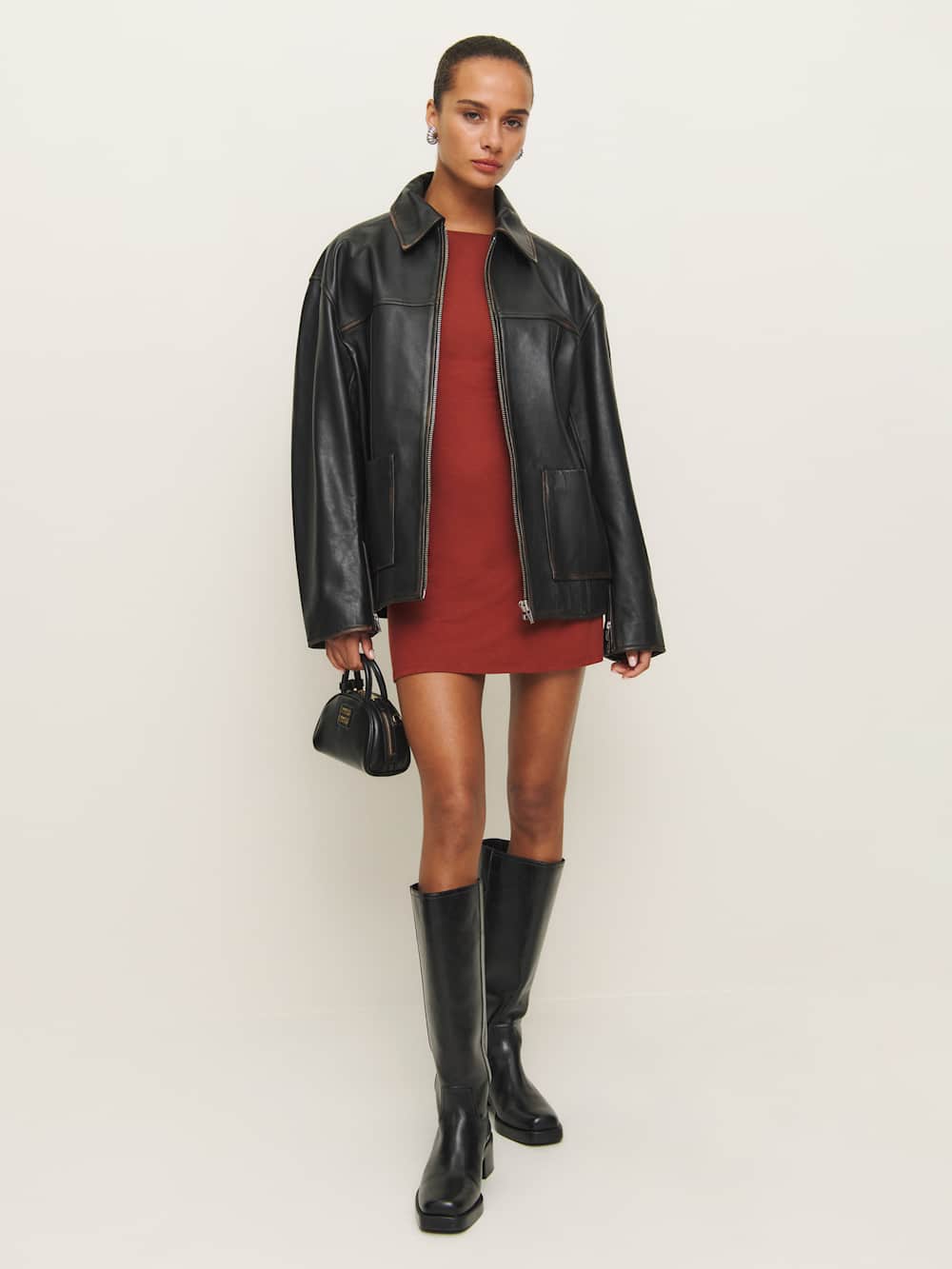 Stay warm out there. Shop the Veda Bennett Oversized Leather Bomber, a sustainable leather jacket from Reformation.