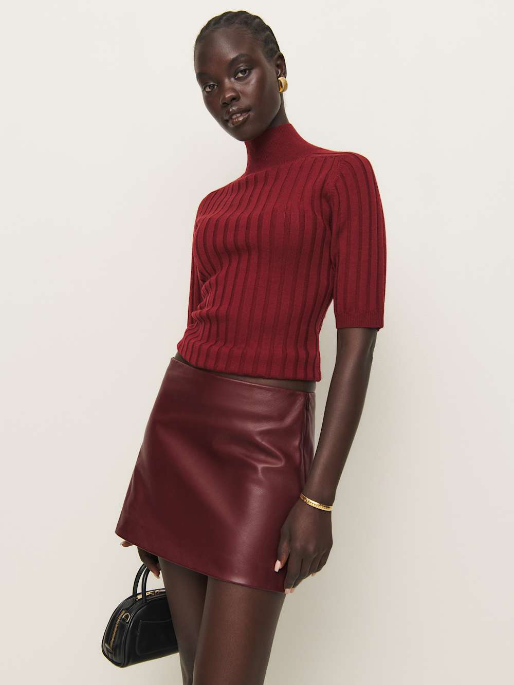 Don’t flirt with me. Shop the Veda Carla Low Waist Leather Mini Skirt from Reformation, a low-rise ultra mini skirt.