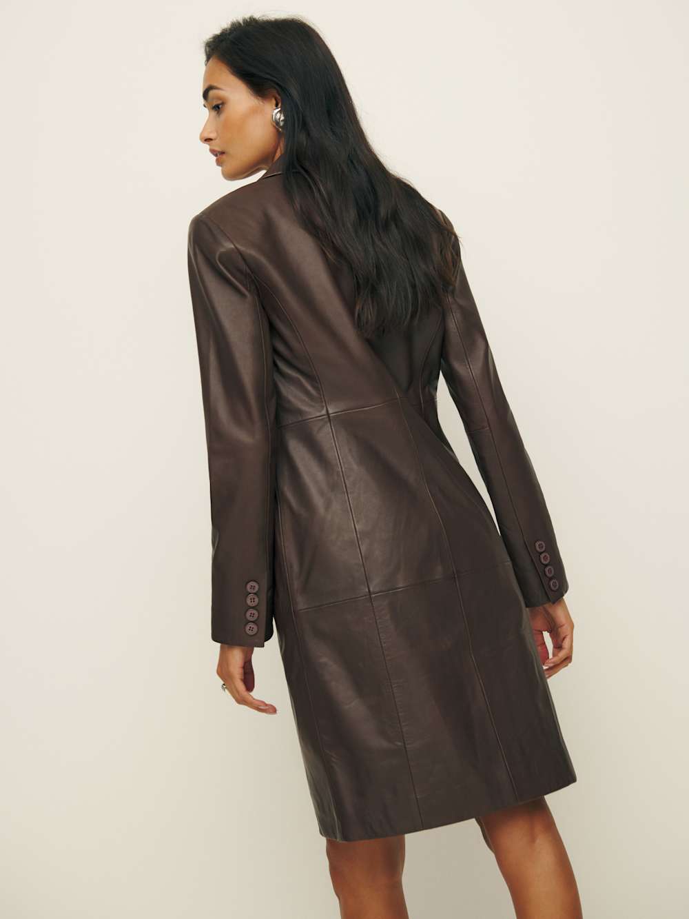 For it girls, by an it girl. Shop the Veda Eleonore Leather Jacket from Reformation, a knee length collared jacket with front pockets.