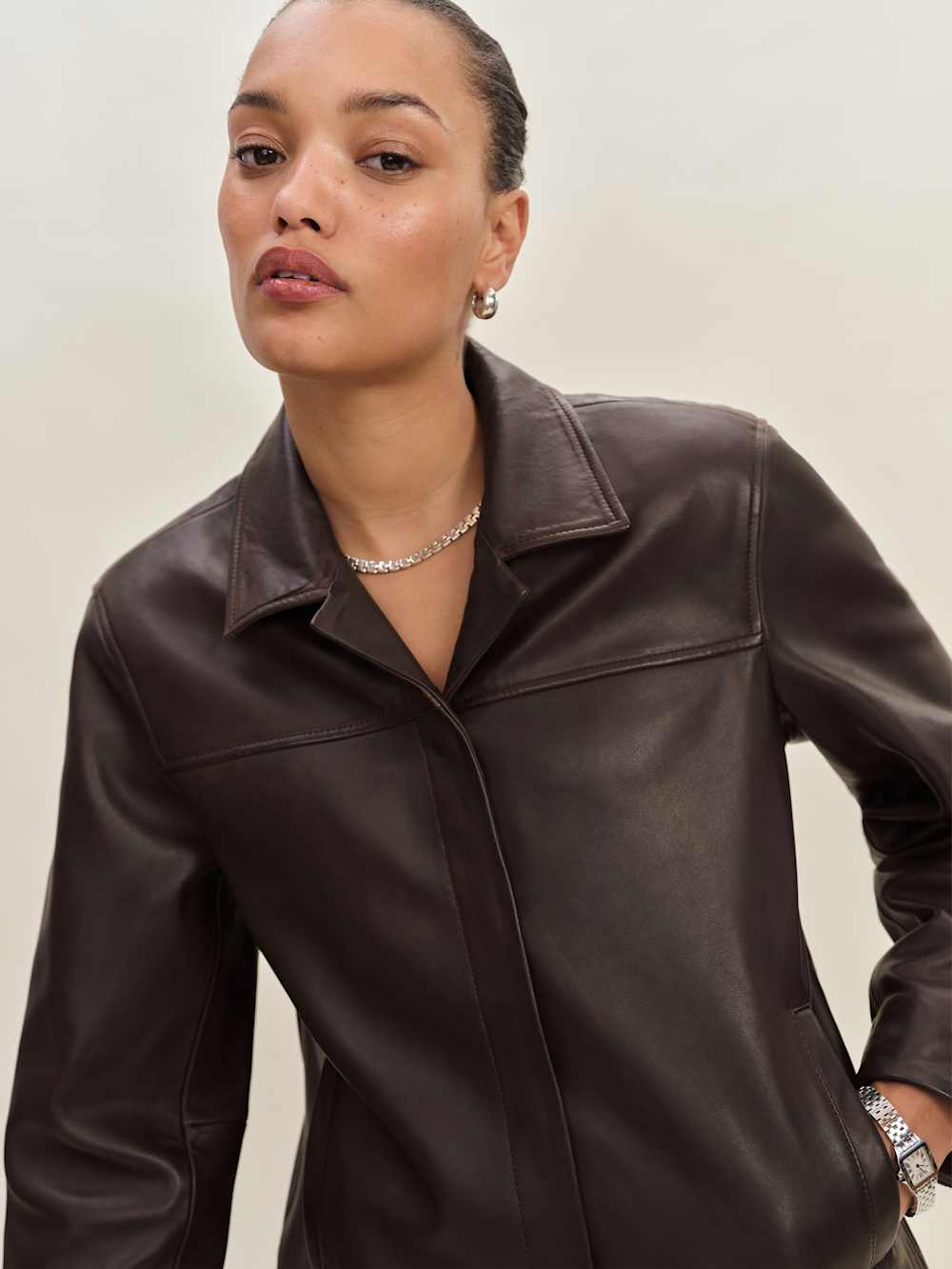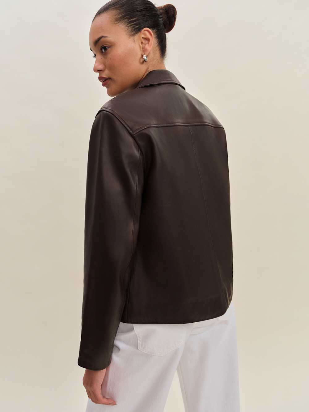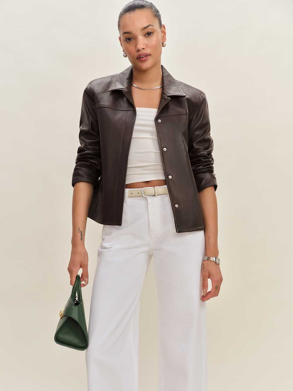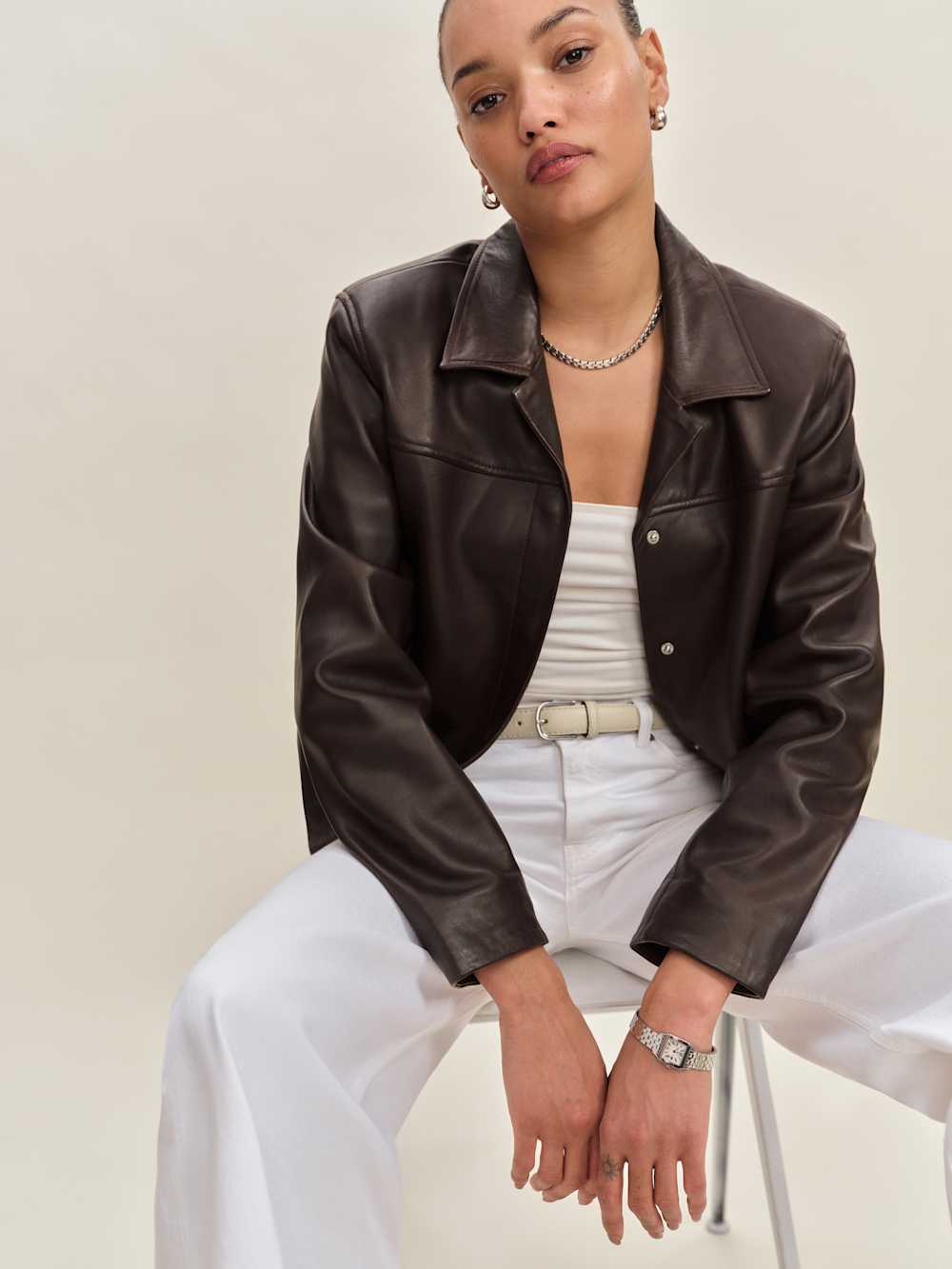 Stay warm out there. Shop the Veda Louisa Leather Jacket, a sustainable leather jacket from Reformation.
