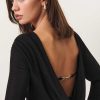 Shop the Vivien Knit Dress from Reformation, a long-sleeve mini dress with a boat neckline and open cowl back.