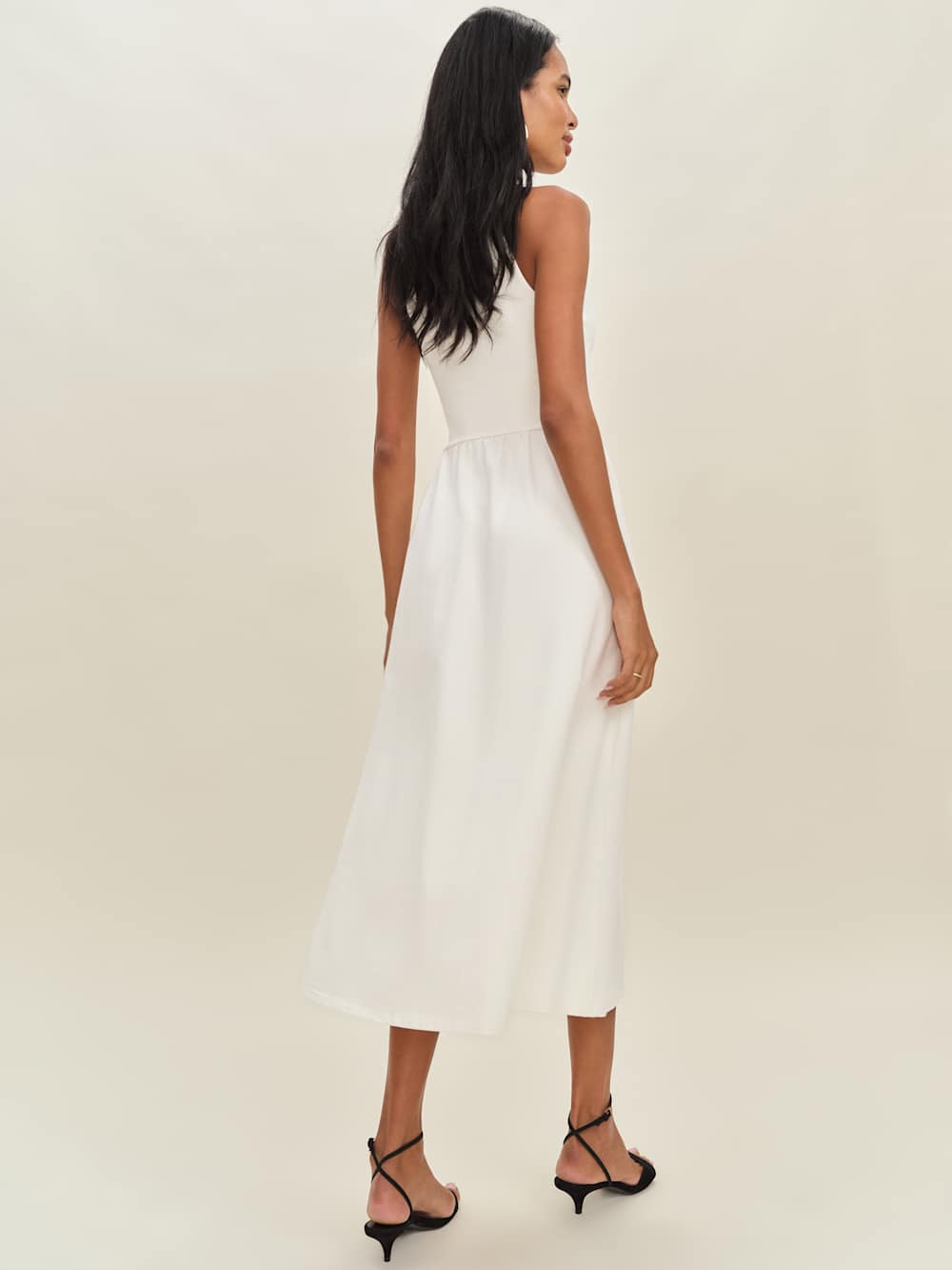 Wear the dress. Shop the Walker Knit Dress from Reformation, a sleeveless midi dress with a fitted bodice and full skirt.
