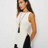You must be new. Shop the Walker Knit Top from Reformation, a sleeveless top with a boat neckline, cinching at the waist, and a side slit.