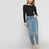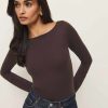 On top of it. Shop the Wiley Knit Top from Reformation, a long sleeve top, with a boat neck. It’s tight fitting throughout for a more defined look.