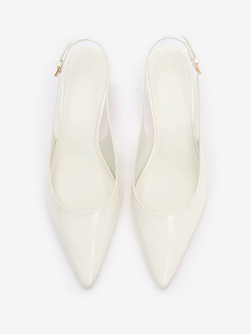 Wear the shoes. Shop the Wrenley Heeled Slingback from Reformation, a heeled singback with a pointed toe.