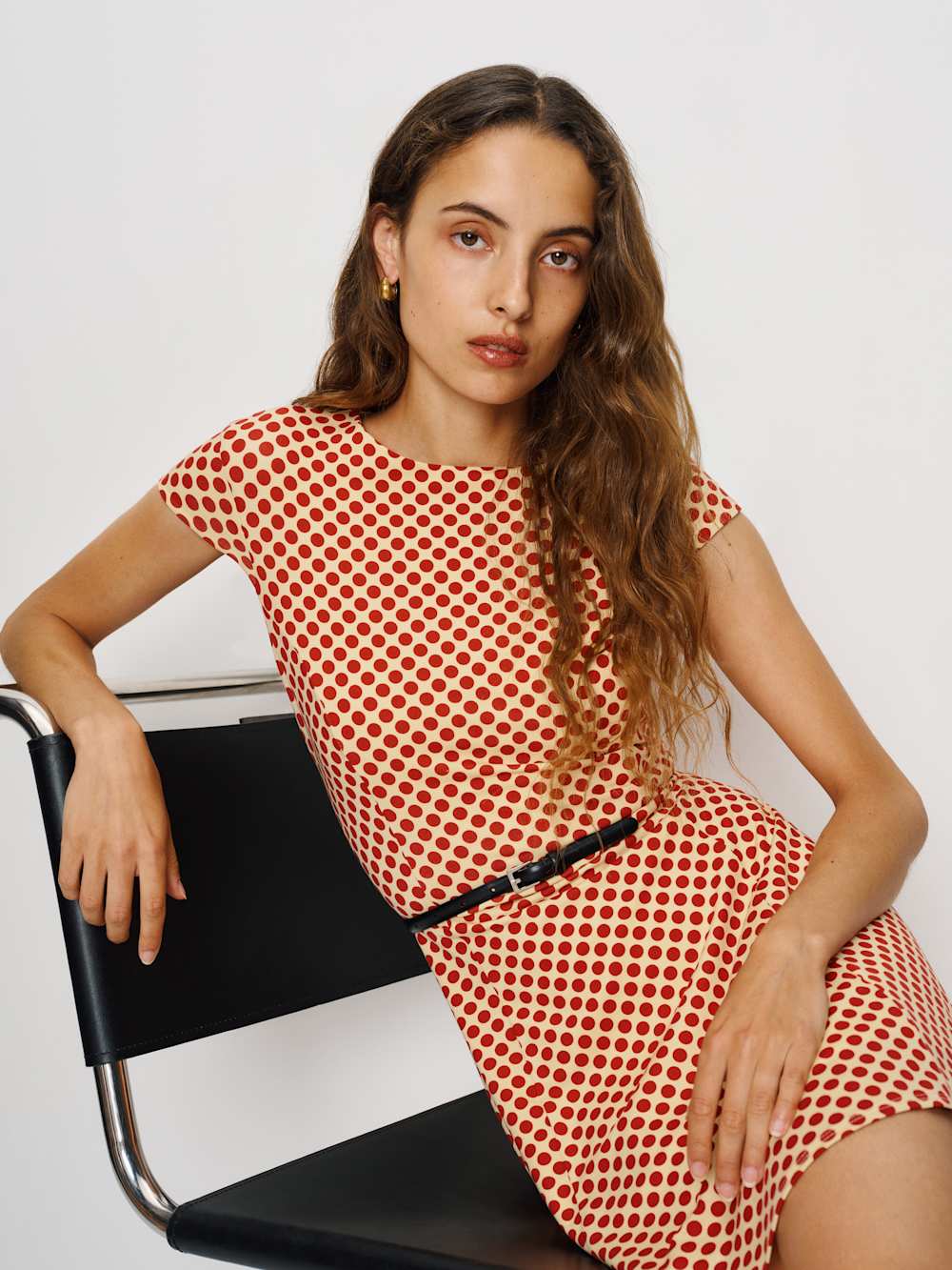 How classic. Shop the Yves Knit Dress from Reformation, a mini dress with cap sleeves and high neckline.