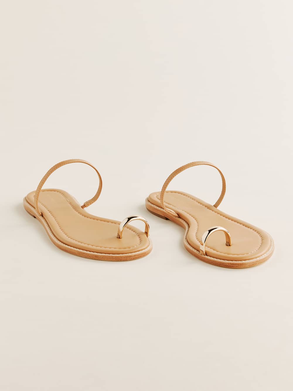 Throw on and go. Shop the Cassandra Flat Sandal from Reformation, a flat sandal with toe ring detailing.