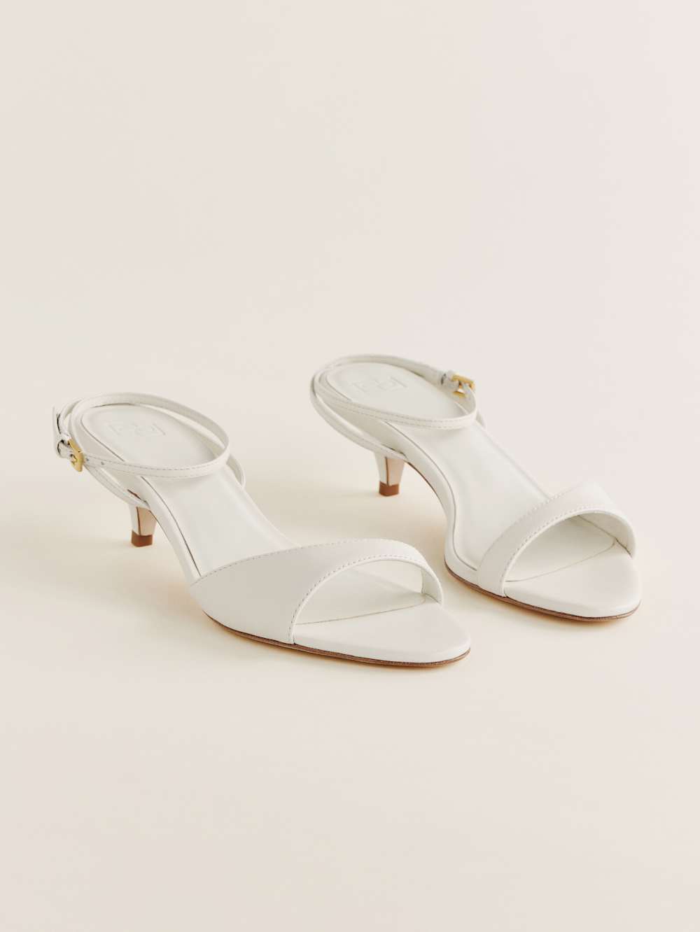 Purrr. Shop the Drew Kitten Heeled Sandal from Reformation, a kitten-heeled sandal with adjustable ankle straps.
