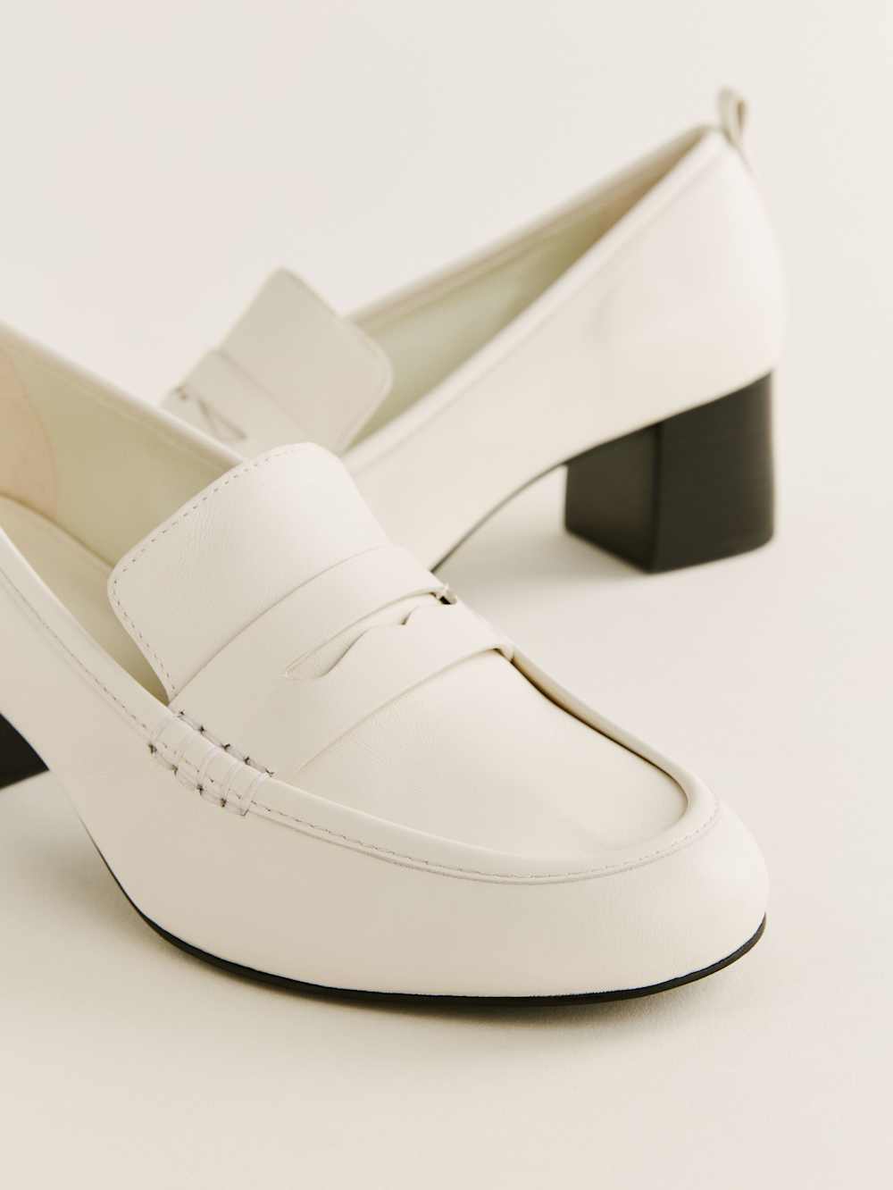 Shop the Franca Heeled Loafer from Reformation, a heeled loafer with a round toe.