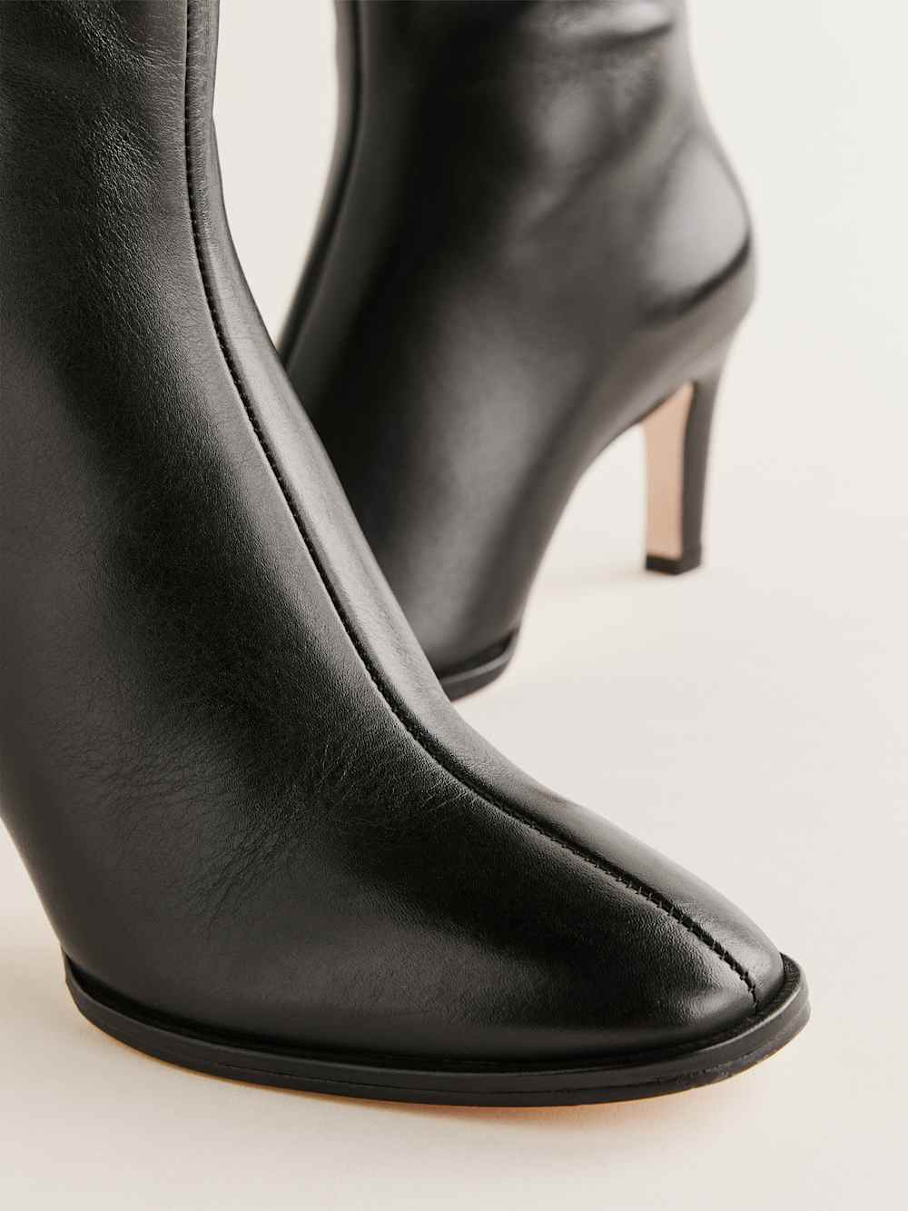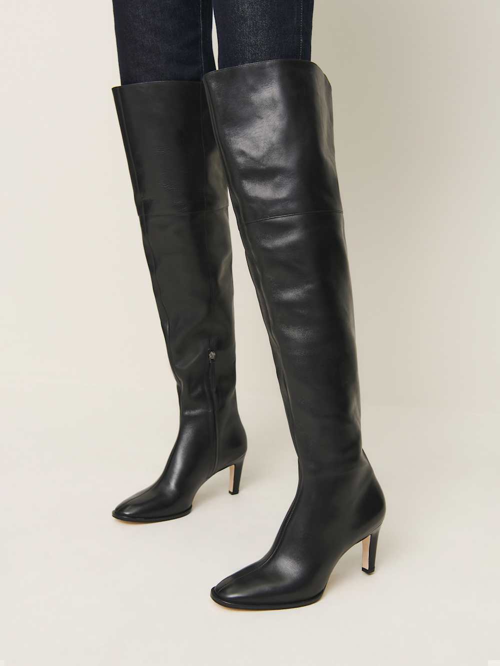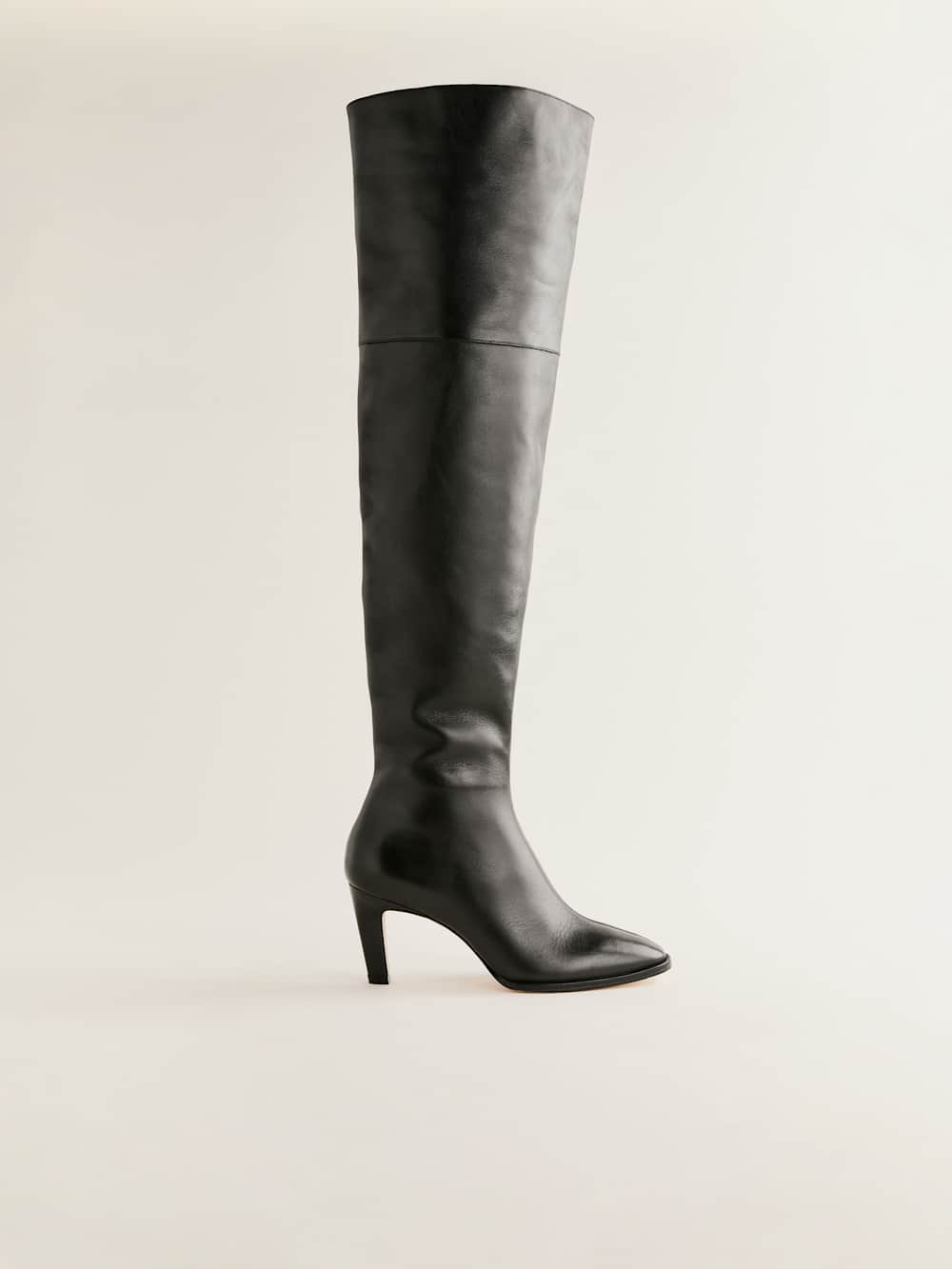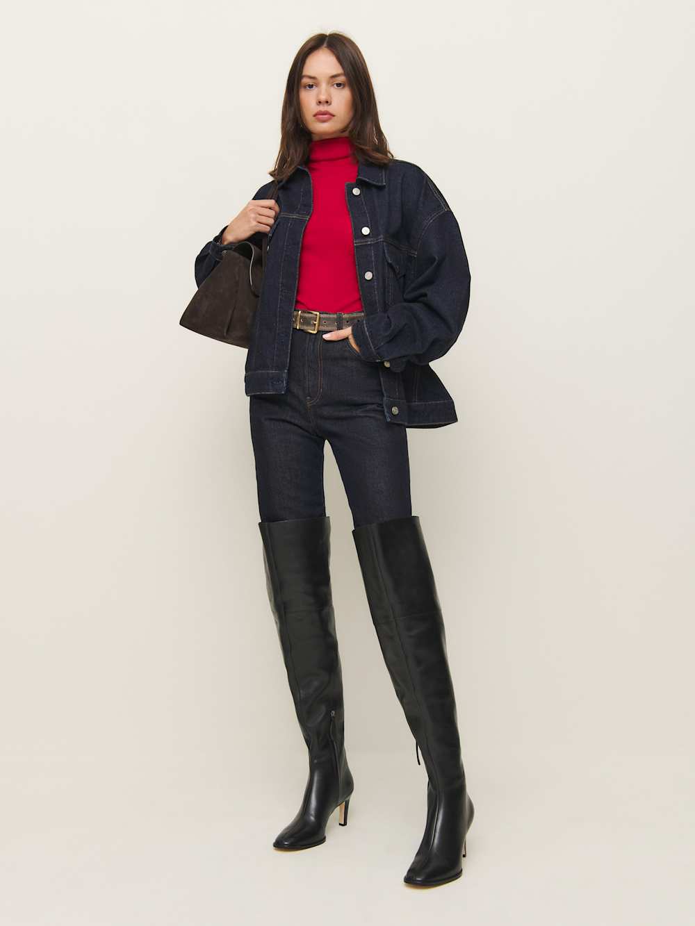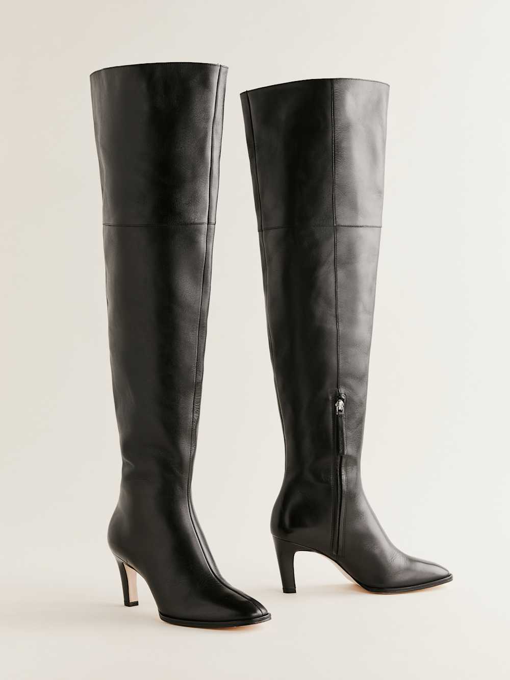 These boots were made for walkin’. Shop the Giles Over The Knee Boot from Reformation, an over-the-knee boot with a round toe and seam detailing.