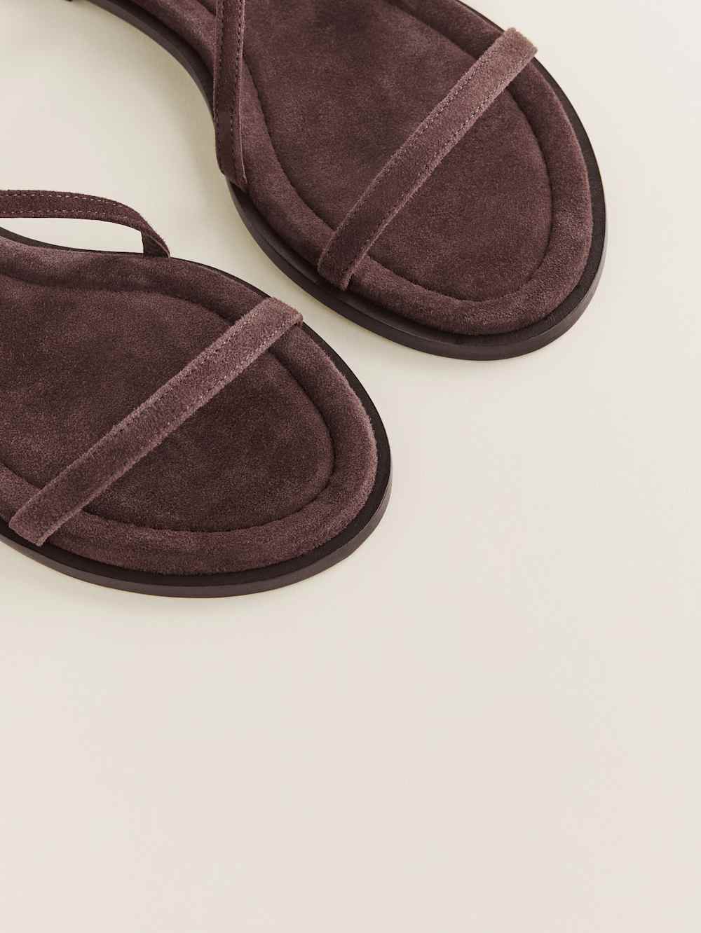 Wear me. Shop the Jamie Flat Sandal from Reformation, a flat sandal with a strap across the toe and adjustable lace up ankle ties.