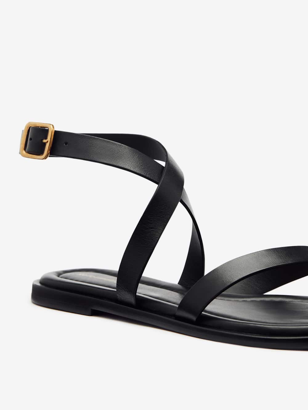 Wear me. Shop the Jane Flat Sandal from Reformation, a flat sandal with asymmetrical straps and an adjustable strap at the ankle.