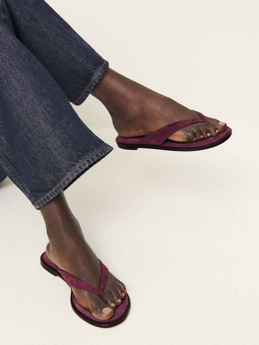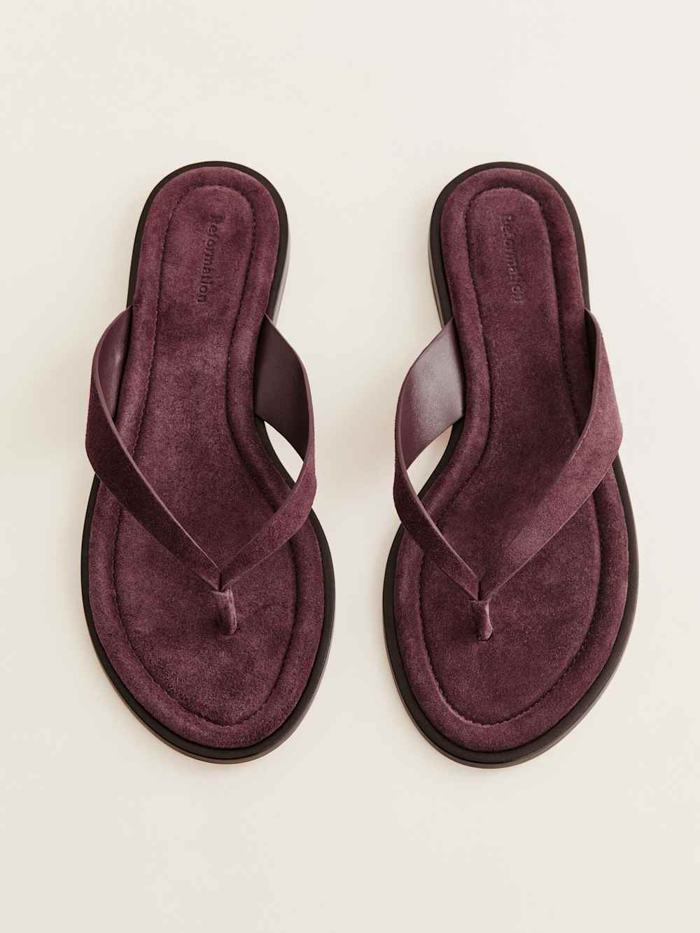 Show some foot. Shop the Jessie Thong Sandal from Reformation, a flat thong sandal with a padded footbed for extra comfort. Runs true to size.