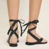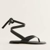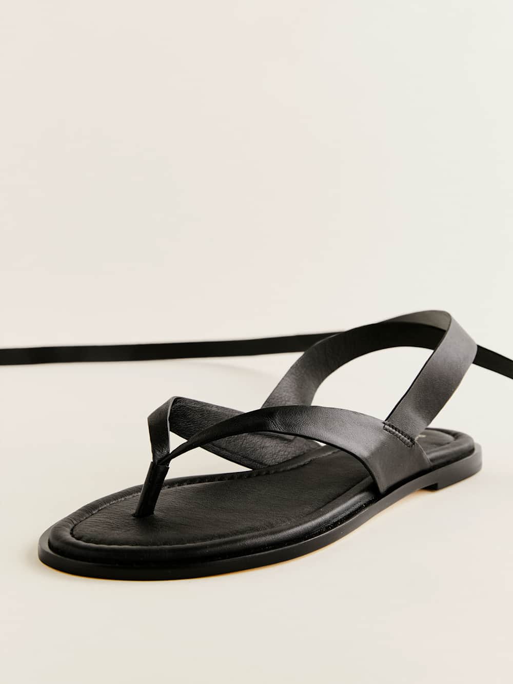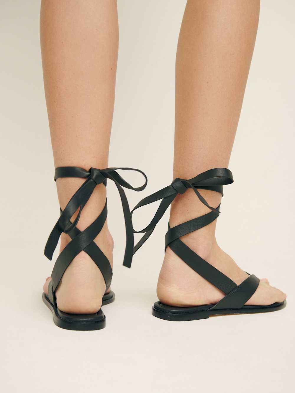 Wear me. Shop the Justine Lace Up Thong Sandal from Reformation, a flat sandal with a round toe and wrap around ankle ties.