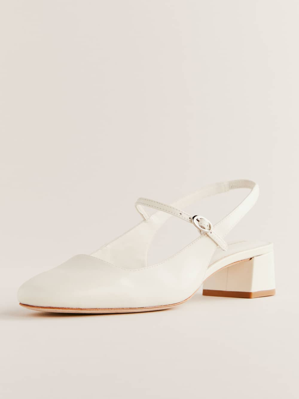 We want to touch your feet. Shop the Maddox Slingback Heel from Reformation, a slingback with a low block heel, round toe, and a thin strap.