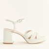 People might stare at your feet. The Maize is a platform sandal with a 100% silk satin charmeuse ruched upper and adjustable ankle straps.
