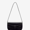 Two toned, polished leather. Spot clean.