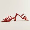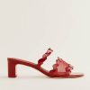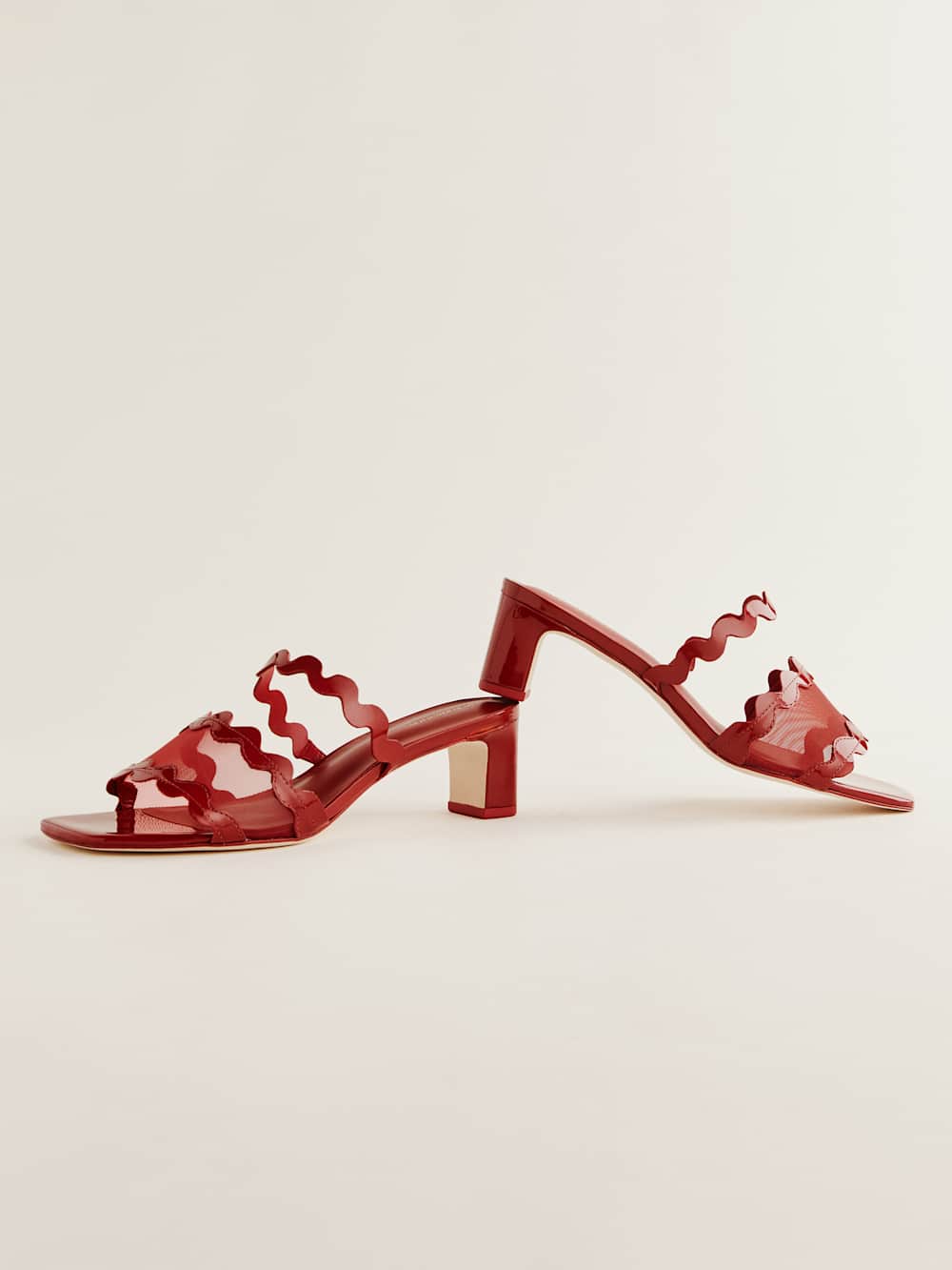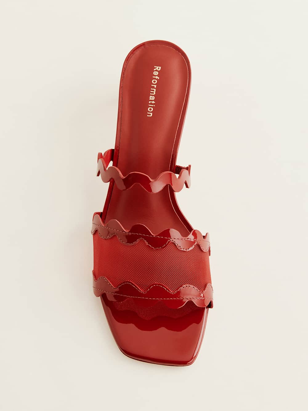 Wear me. Shop the Maureen Block Heel Sandal from Reformation, a block-heeled sandal with an open toe, squiggle detailing at the upper, and a mesh panel.