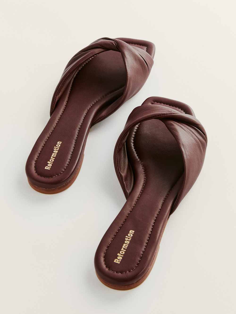 Your feet want some attention. Shop the Mikki Twist Flat Sandal from Reformation, a flat sandal with a twisted upper that’s padded for extra comfort.