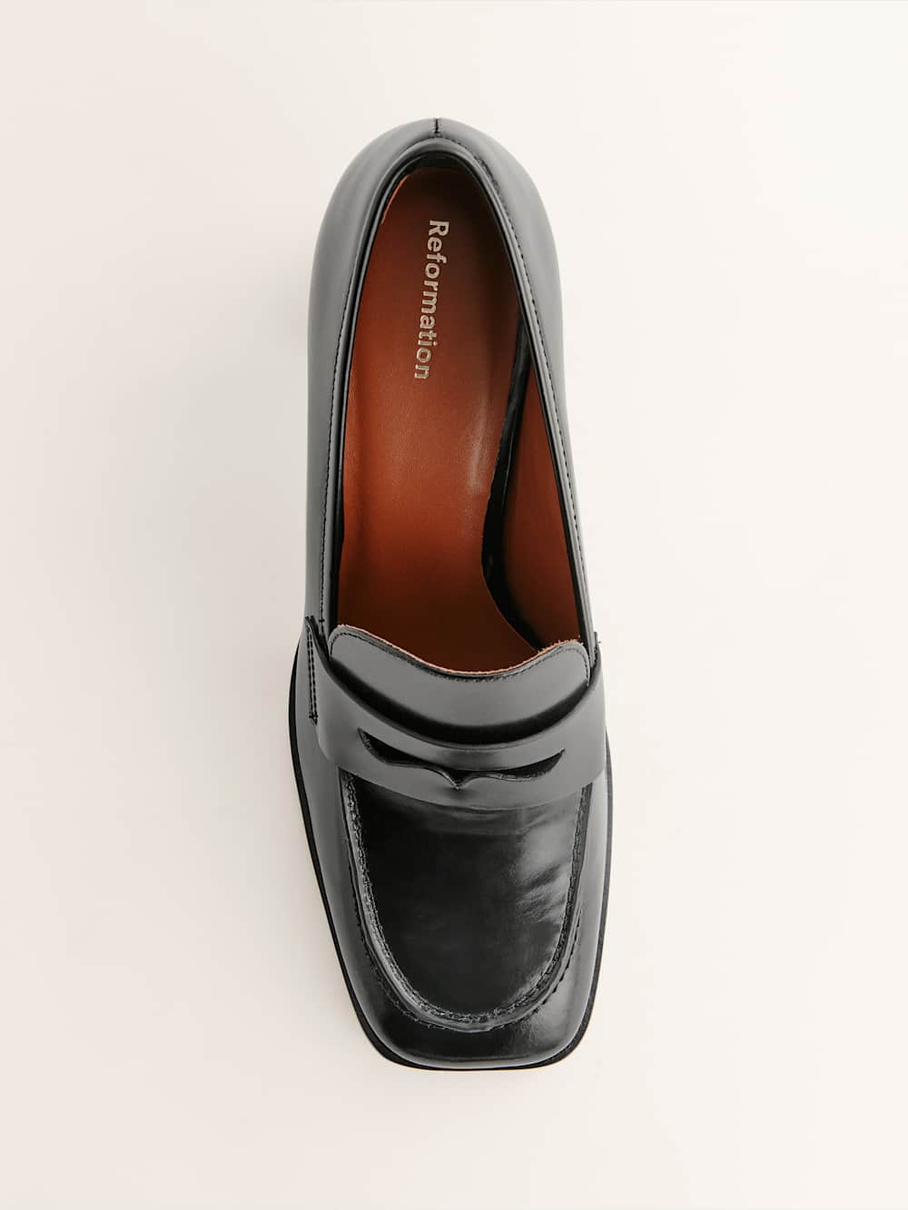 Get off on the right foot. Shop the Nadine Heeled Loafer from Reformation, a stacked, block heel penny loafer with a square toe for extra cuteness.